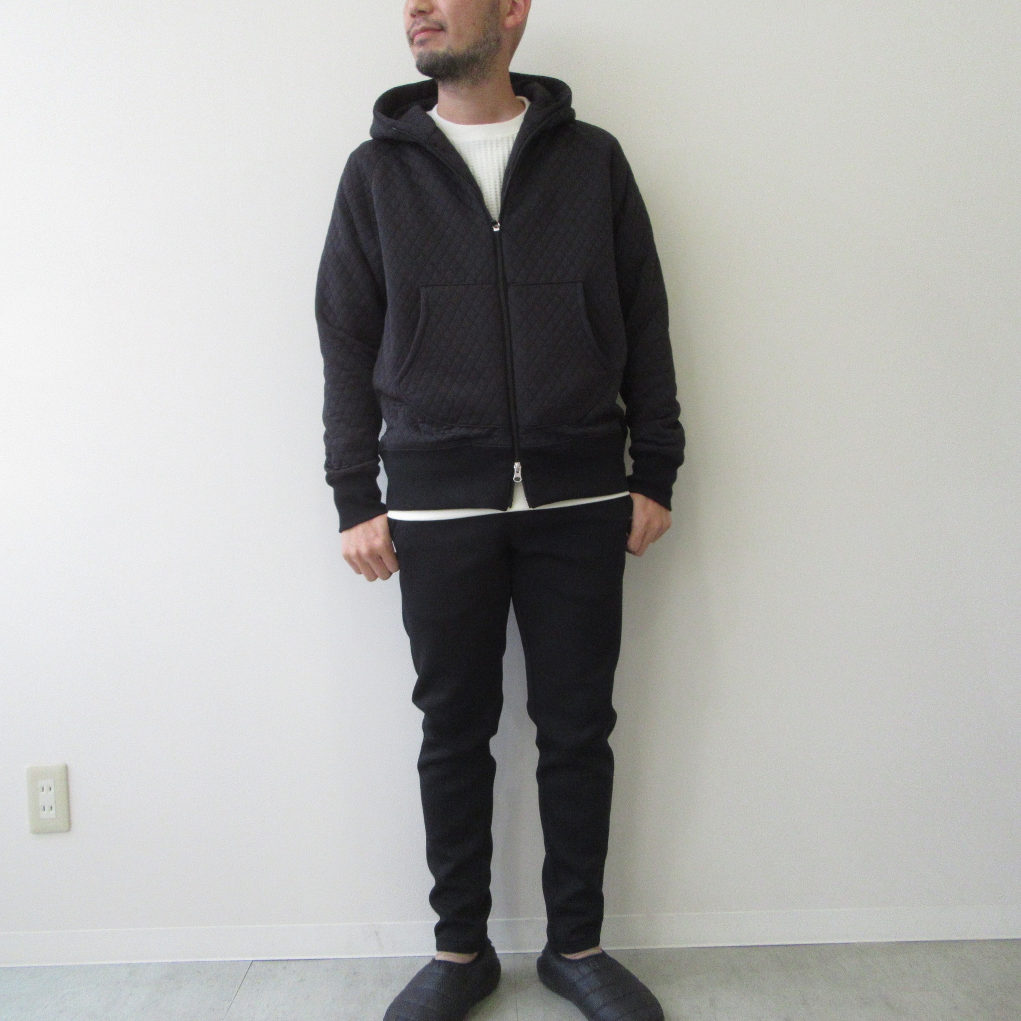 SALUTE HELM(サルートヘルム) 写真じゃ伝わりにくいアイテムのひとつ、キルトジャガードパーカー。ひし形状のキルティングかと思いきや、ジャカード織りによってキルティングが表現されている特殊な生地を使用しているアイテムです。