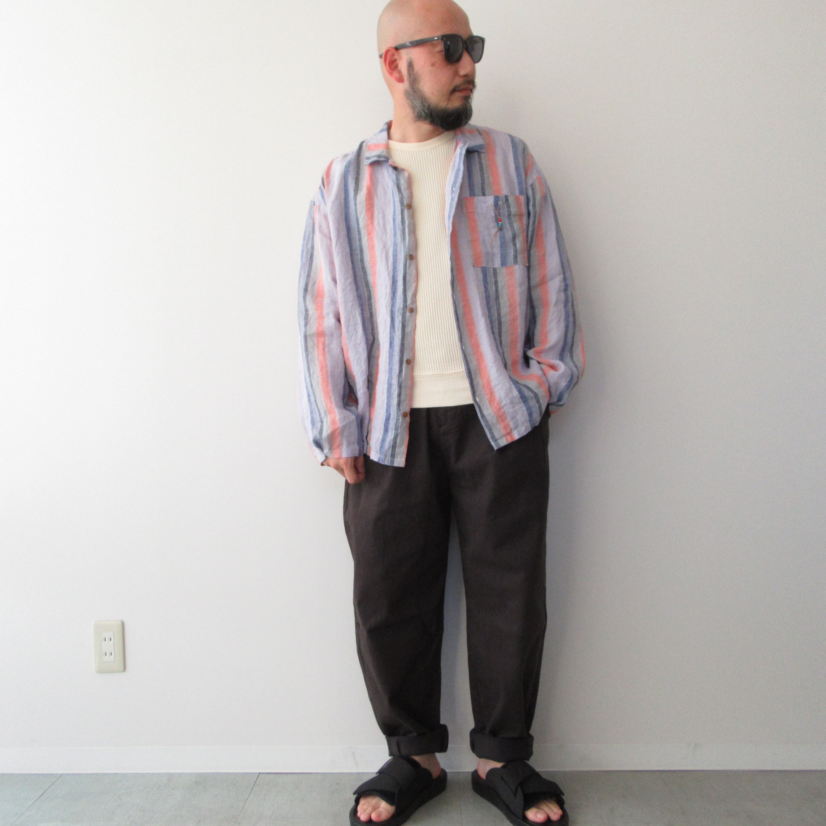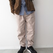 ゆったりワイドシルエットでは野暮ったく見えるのでしっかりとテーパードをきかせ、裾はおさまりがよくなるように仕上げたシルエットとなっています。