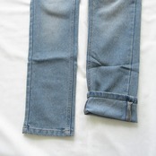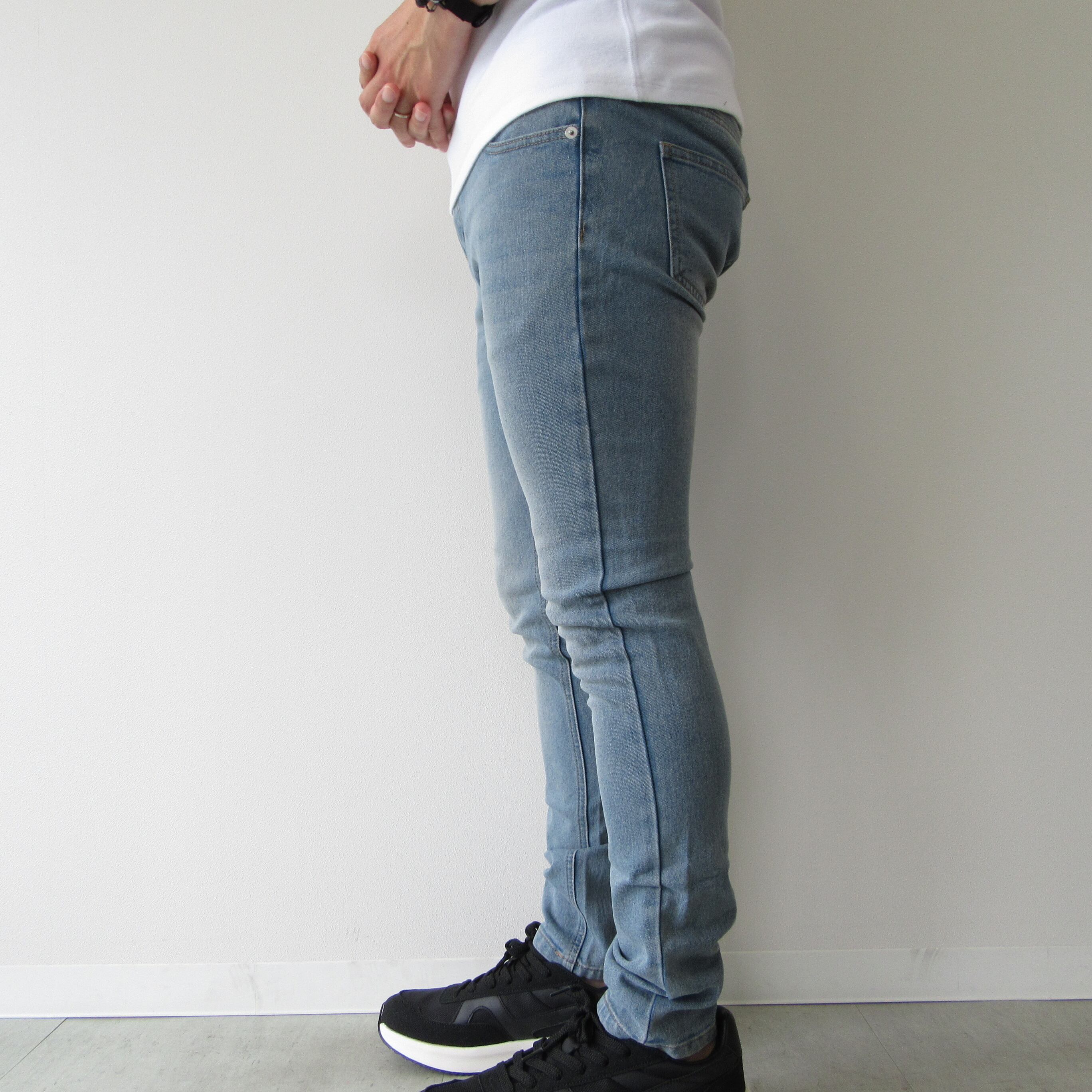 タイトなスキニーシルエットのデニムパンツです。近年ではワイドパンツが主流の中でもタイトなシルエットを好まれるお客様もいらっしゃるのでen別注にてご用意しました。