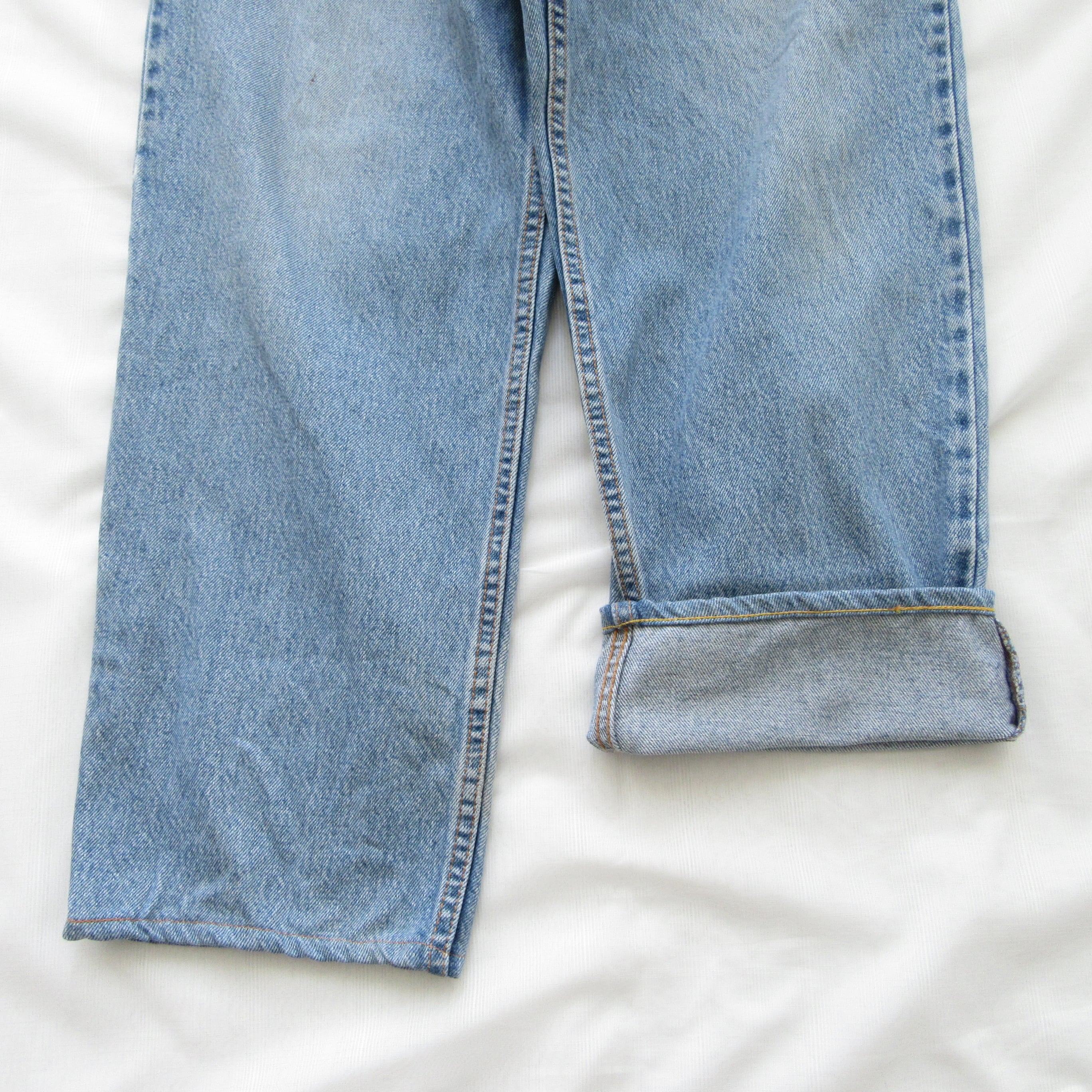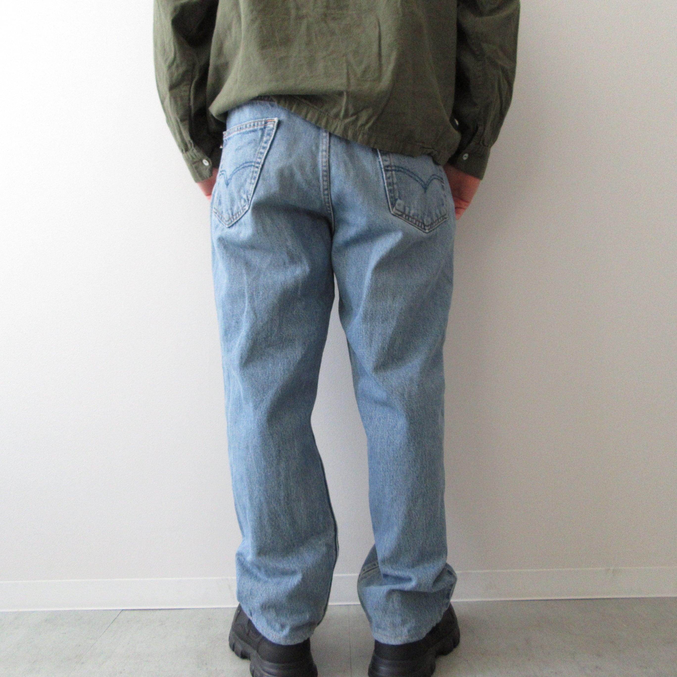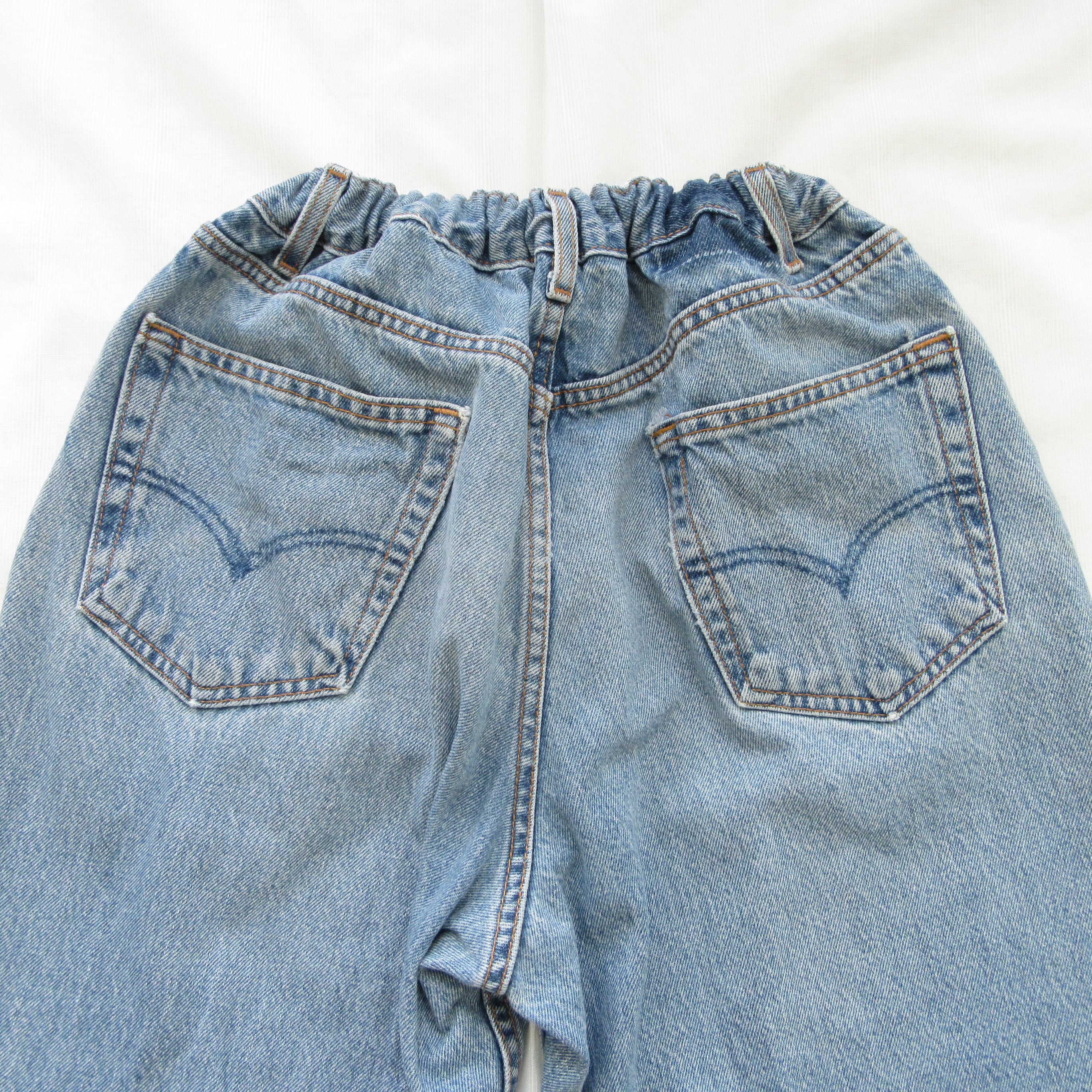 ヴィンテージデニムをリメイクしたアイテムです。元ブランドがわからないようにタグ等は外されていますが、バックポケットに見覚えのあるステッチの跡が残っています。
