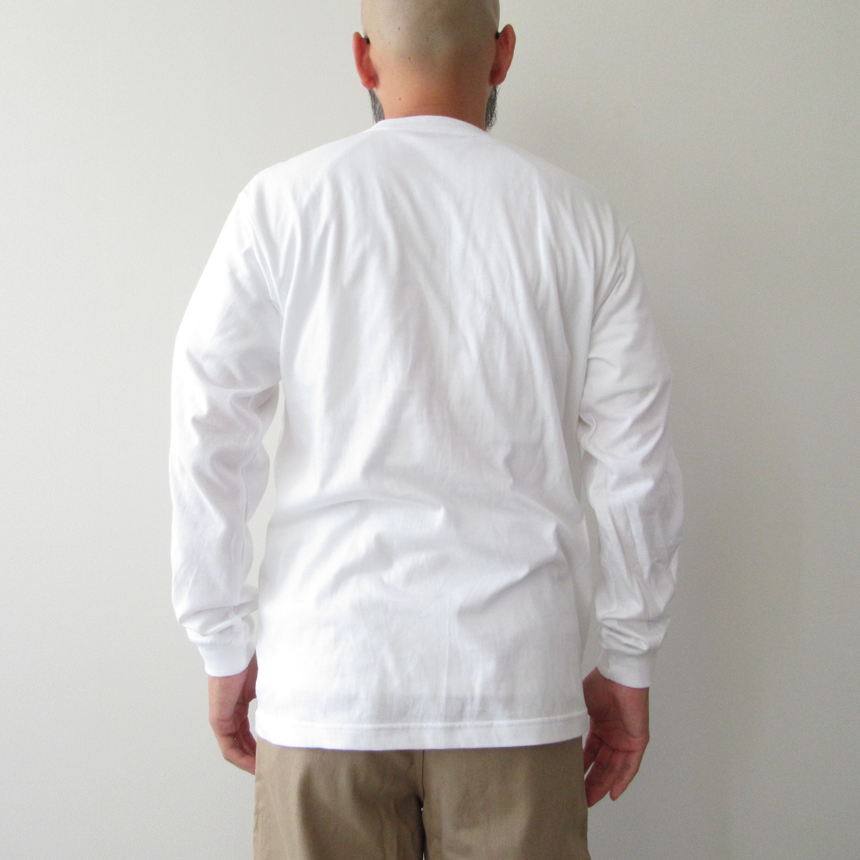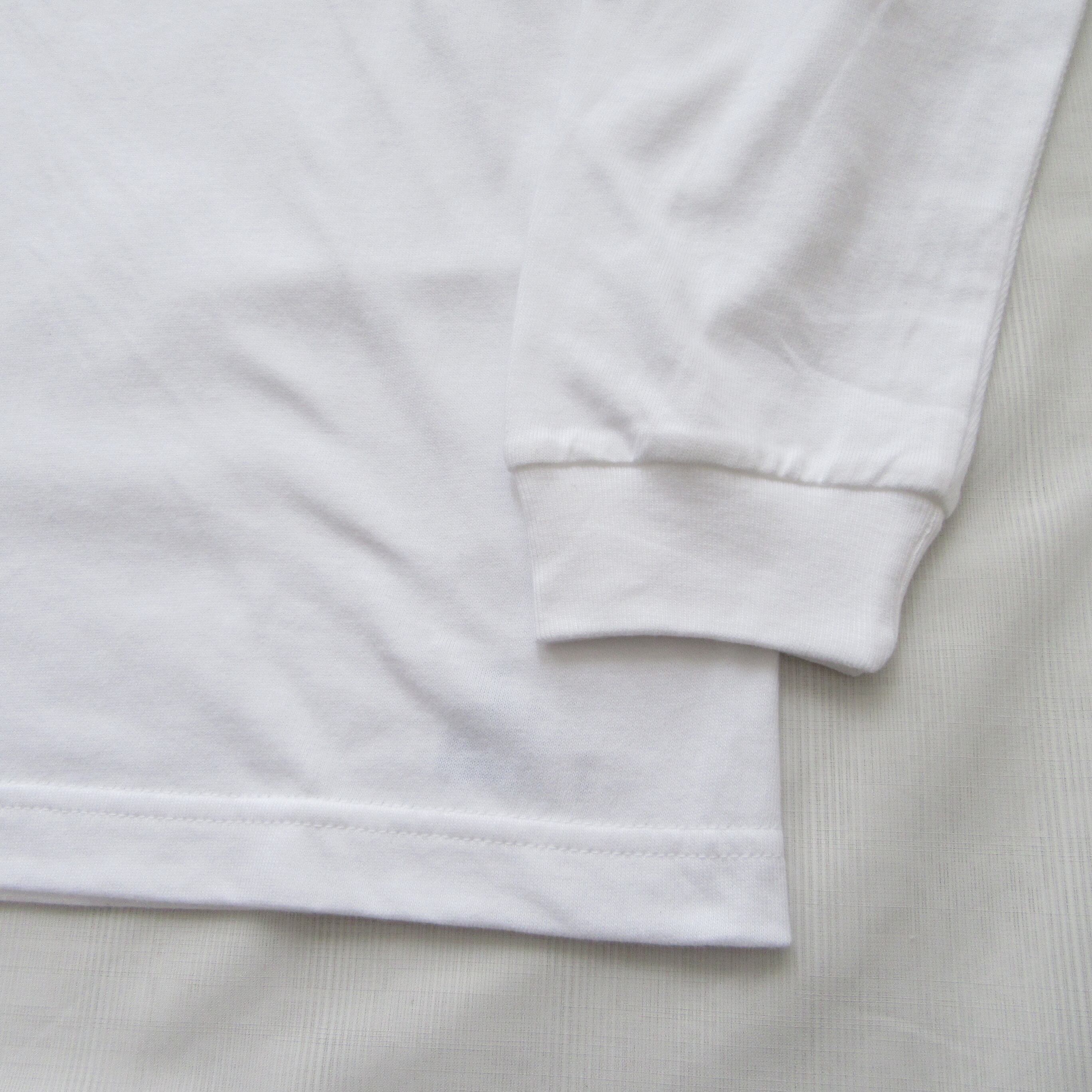 程よい肉感の着やすさと耐久性のバランスの良い5.6オンスの天竺生地を使用。袖はリブ仕様にすることで腕捲りした時や、アウターを重ねた時におさまりがよい設計となっています。