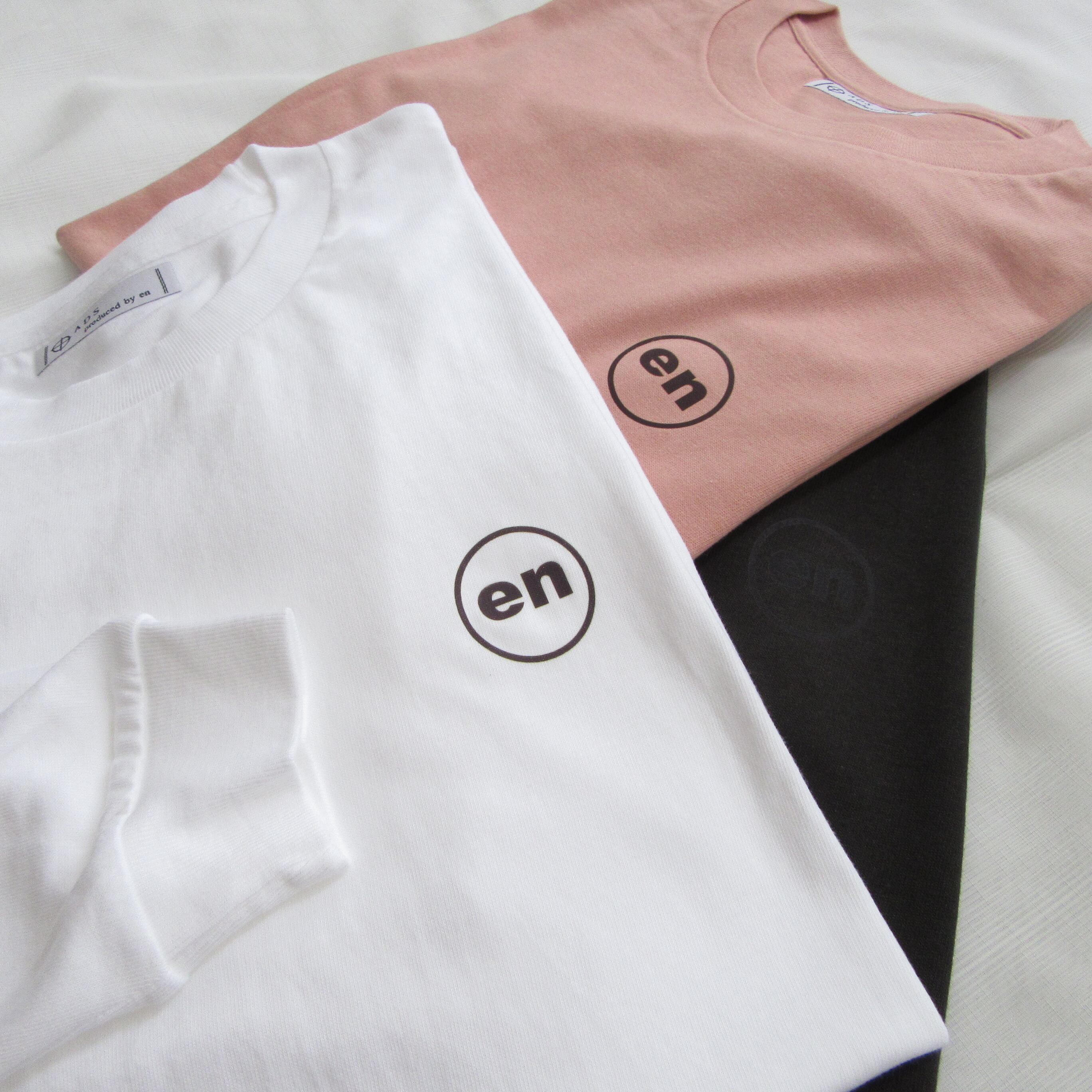 enロゴTシャツ ホワイト・ダスティピンク・チャコール