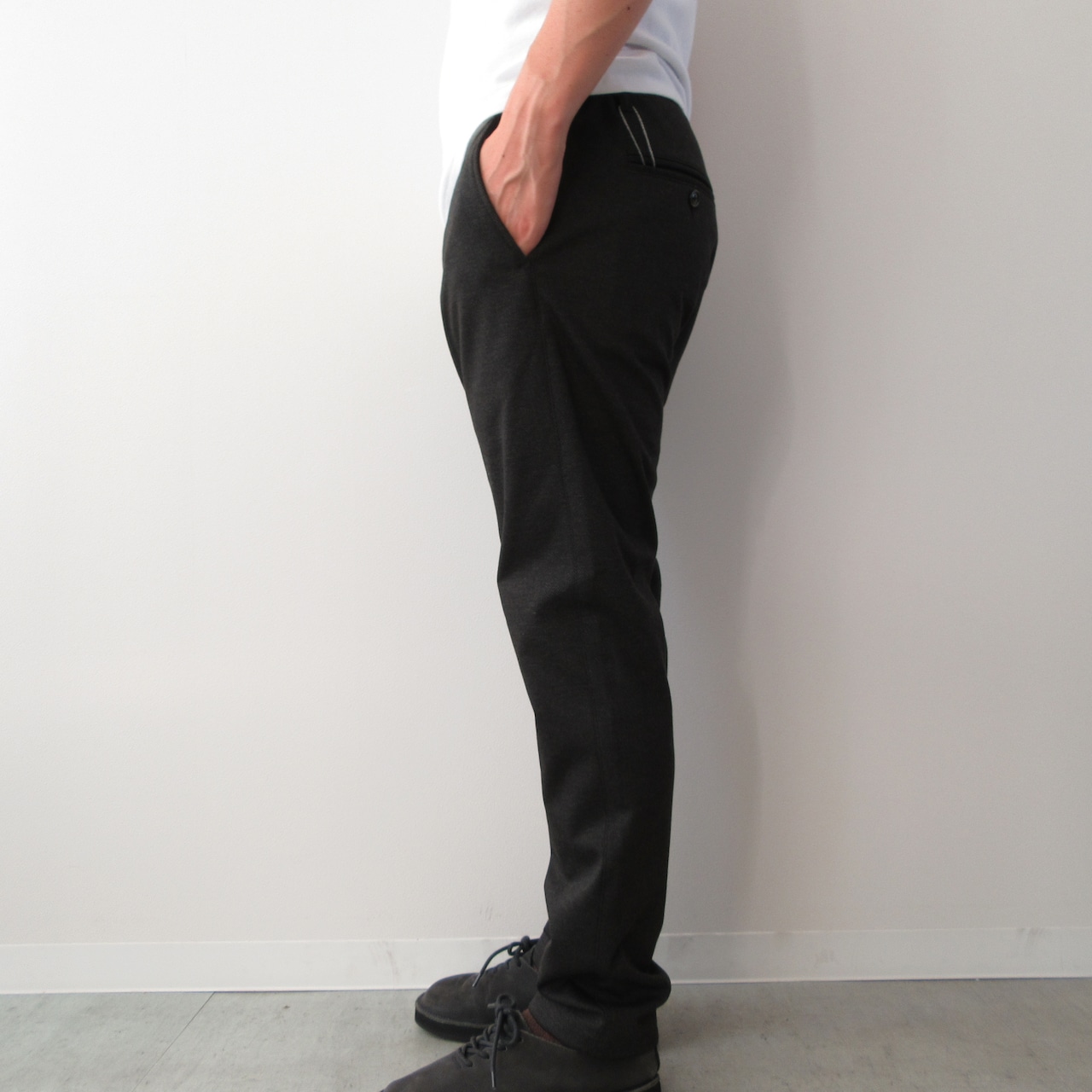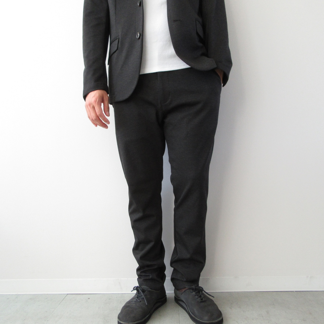 SALUTE HELM人気のセットアップシリーズから「ACTIVE SETTER」(アクティブセッター)を使用したパンツです。控えめで上質感のある光沢と、タテヨコ自由に伸縮するストレッチ性や防シワ・ウォッシャブルなどの機能性に富んだジャージー素材となっています。