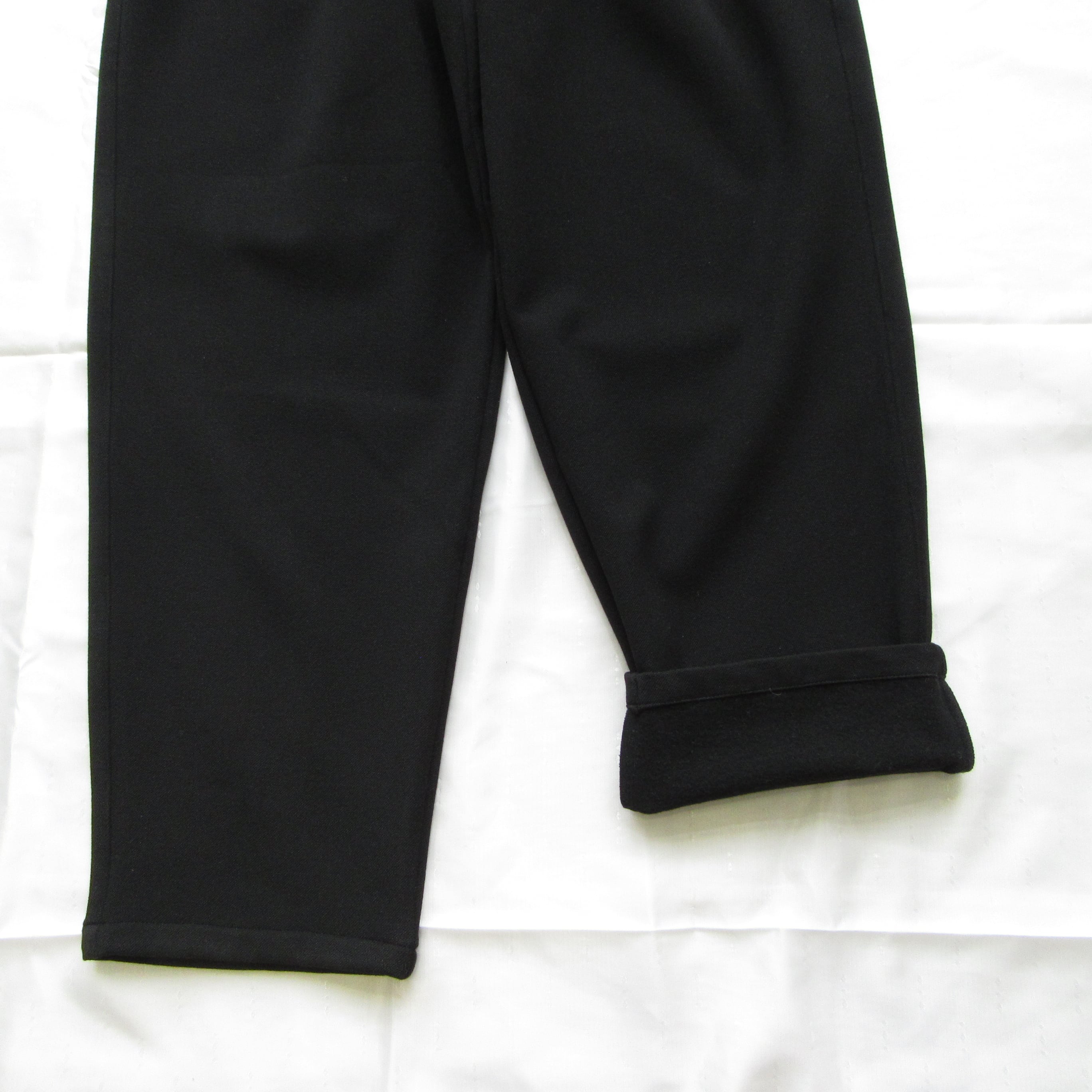 表はウールのような肌触り、裏はカシミヤタッチのフリース仕様の裏起毛ワイドパンツ。機能素材を得意とするSALUTE HELMの冬用のあたたかな穿き心地のパンツです。
