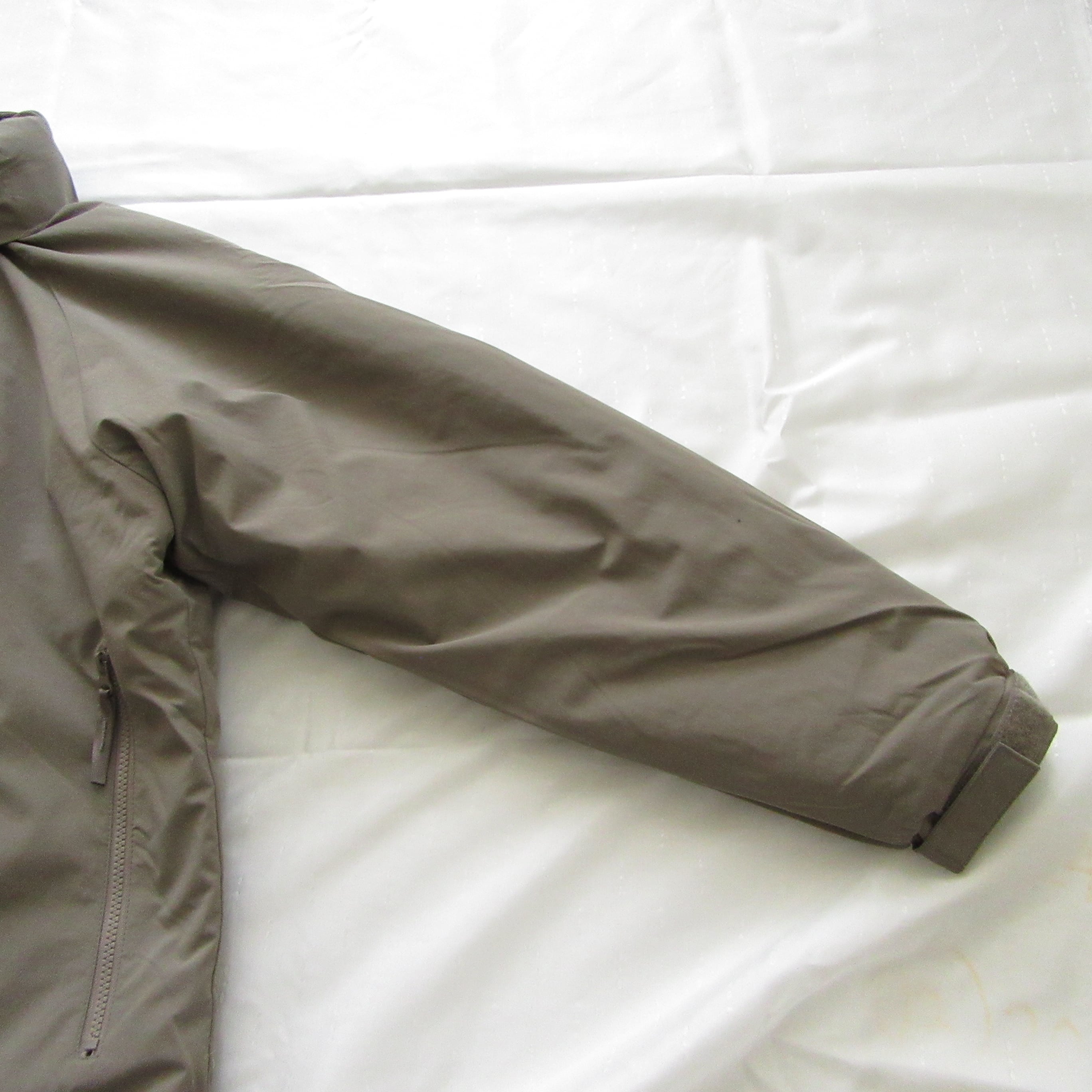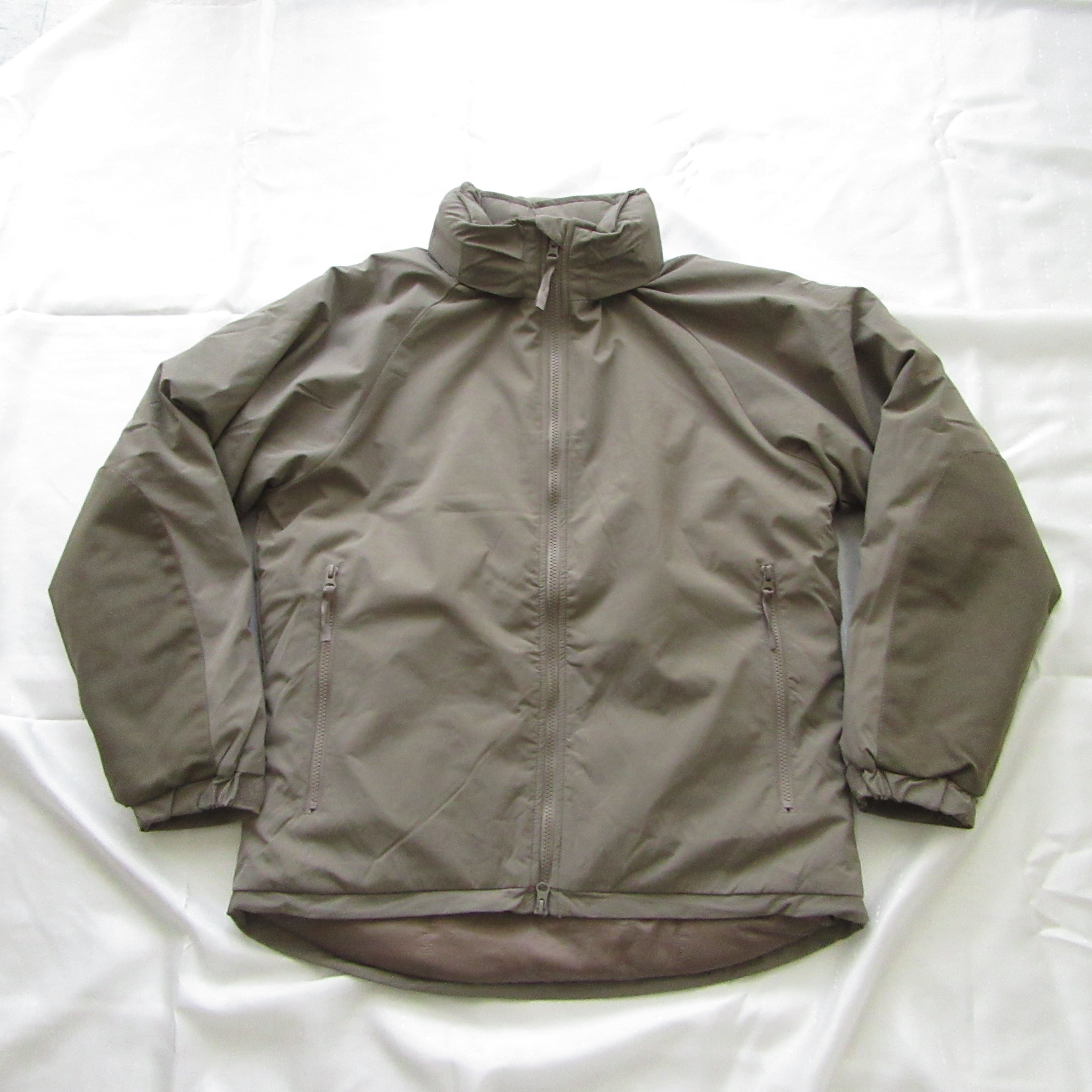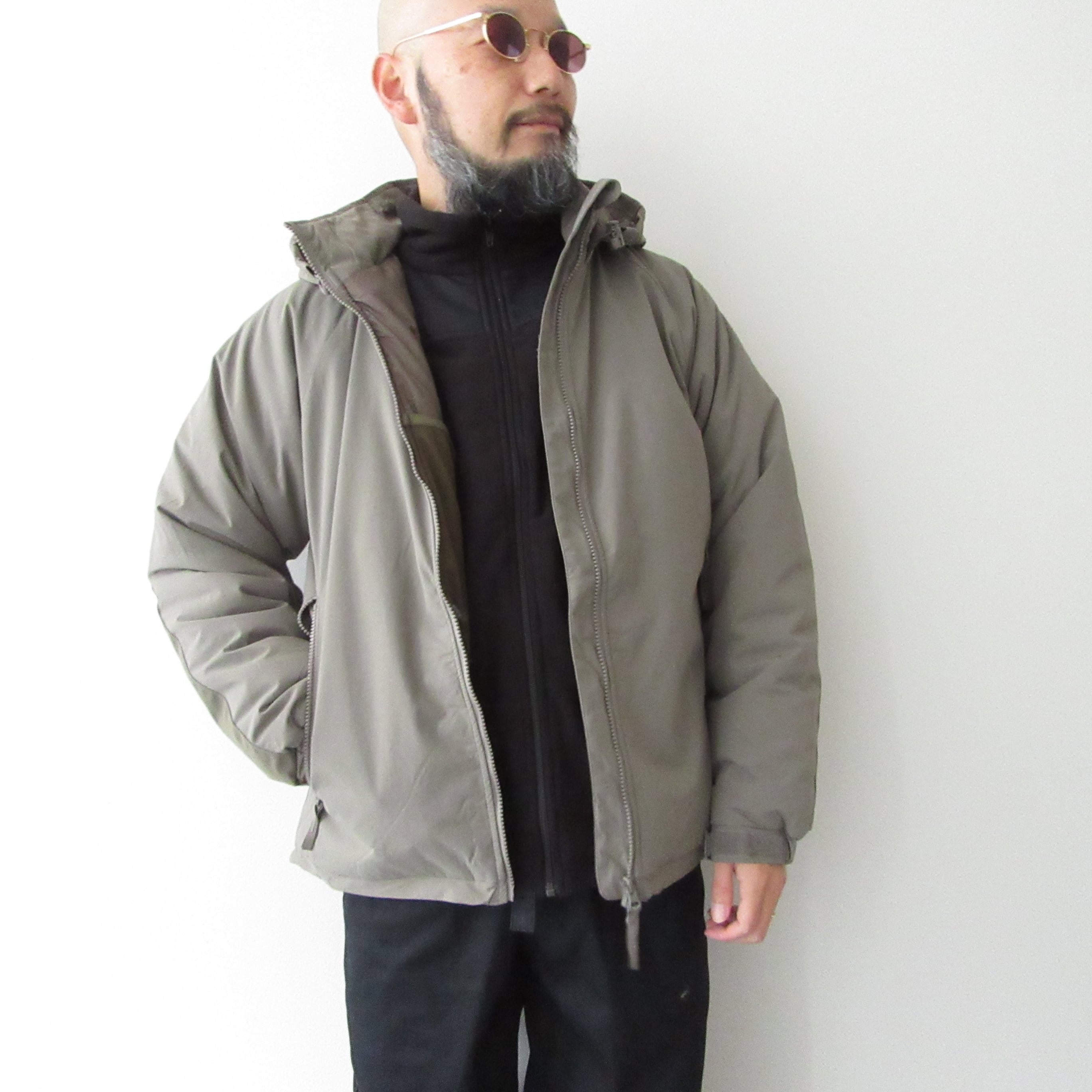 「PCU」や「ECWCS」などアメリカ軍の寒冷地用被服システムにはレベル1~レベル7まで段階があり、こちらのブルゾンは第3世代のレベル7(中綿入りの防寒性の高いもの)をベースに作られています。高い機能性に加えてエルボーパッチや収納式のフードなど実用性のあるミリタリーデザインが特徴です。