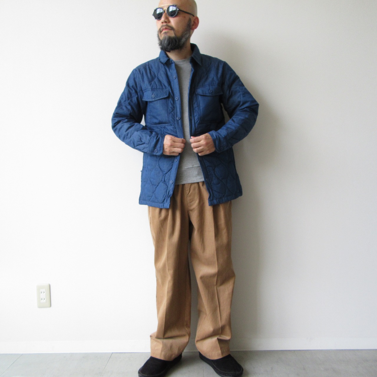 通常のダウンシャツにあるナイロン系の生地を使わずデニムを使用することで、より日常使いしやすくなっています。もちろんアウターとしても着れますが、シャツタイプのインナーダウンとしてコーディネートにアクセントを加えてくれます。
