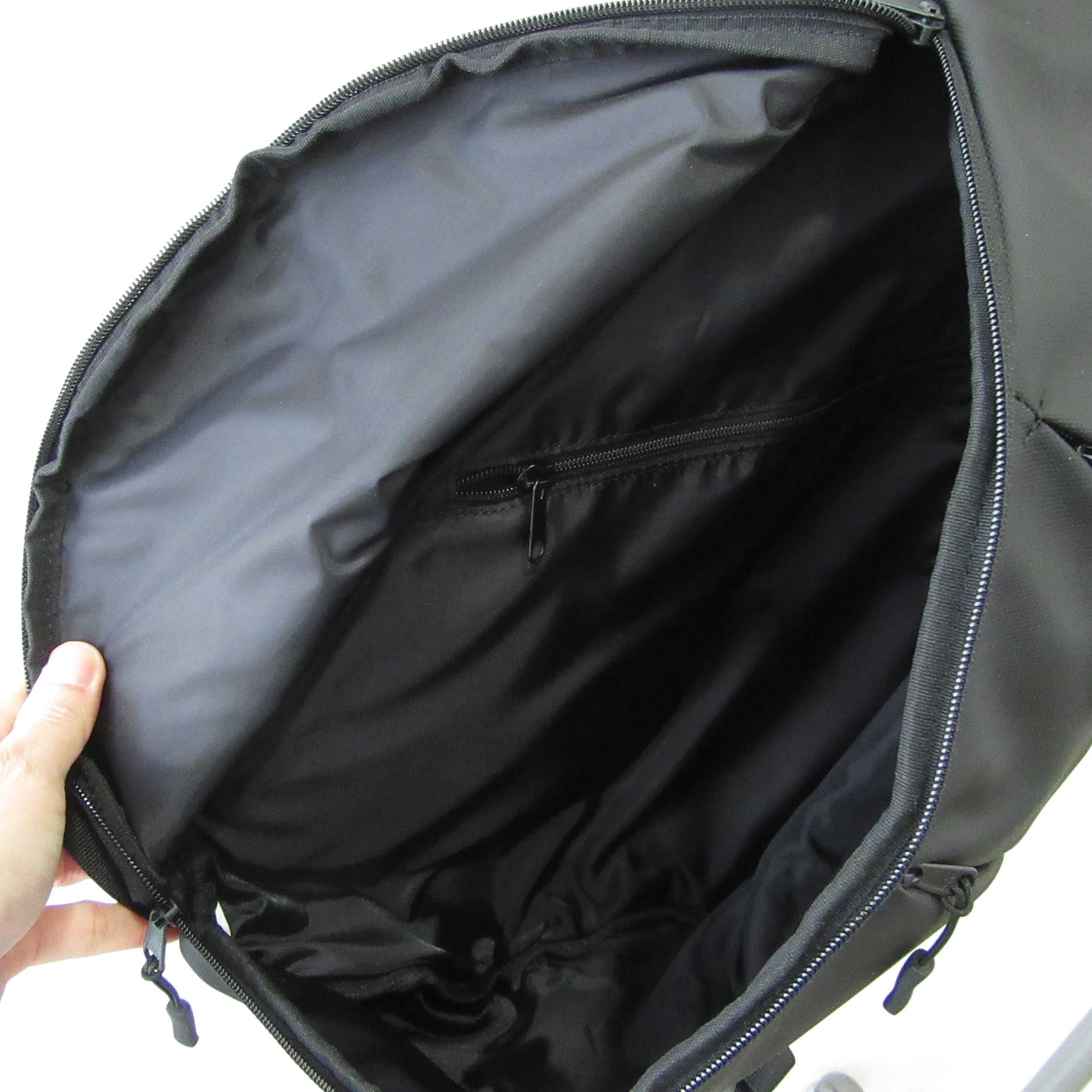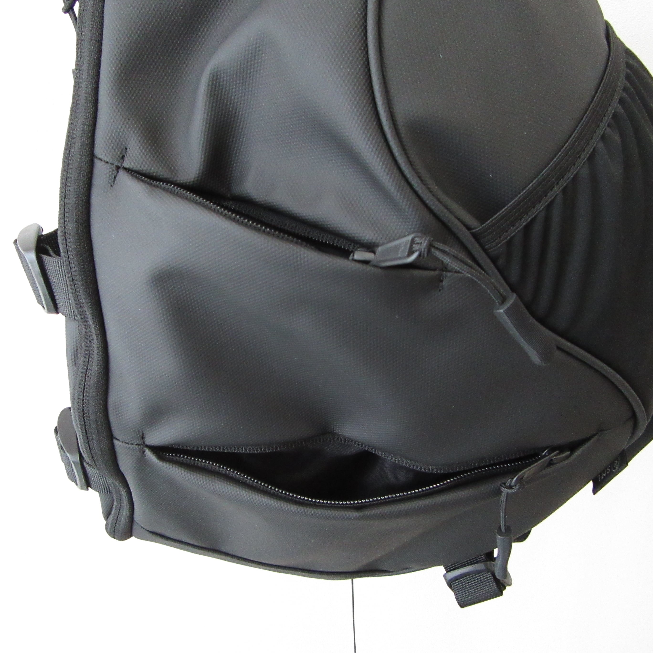 マチにはアジャスターが付いて、用途によってスマートにまとめたり、広げる事が出来ます。ショルダーは長さ調整可能な為、アウター の上からでも着用可能。