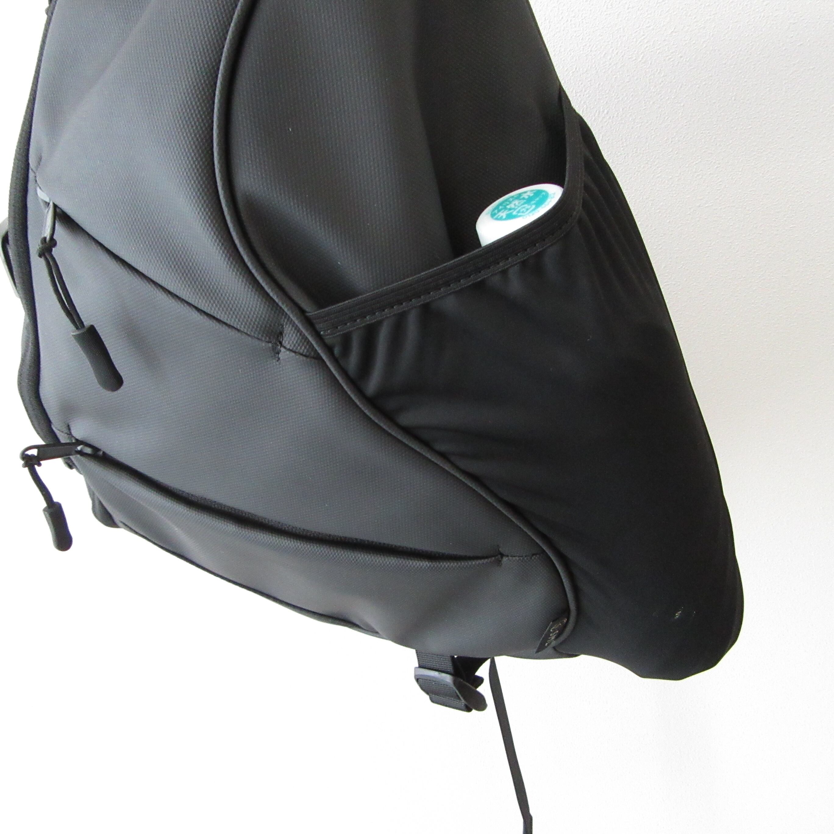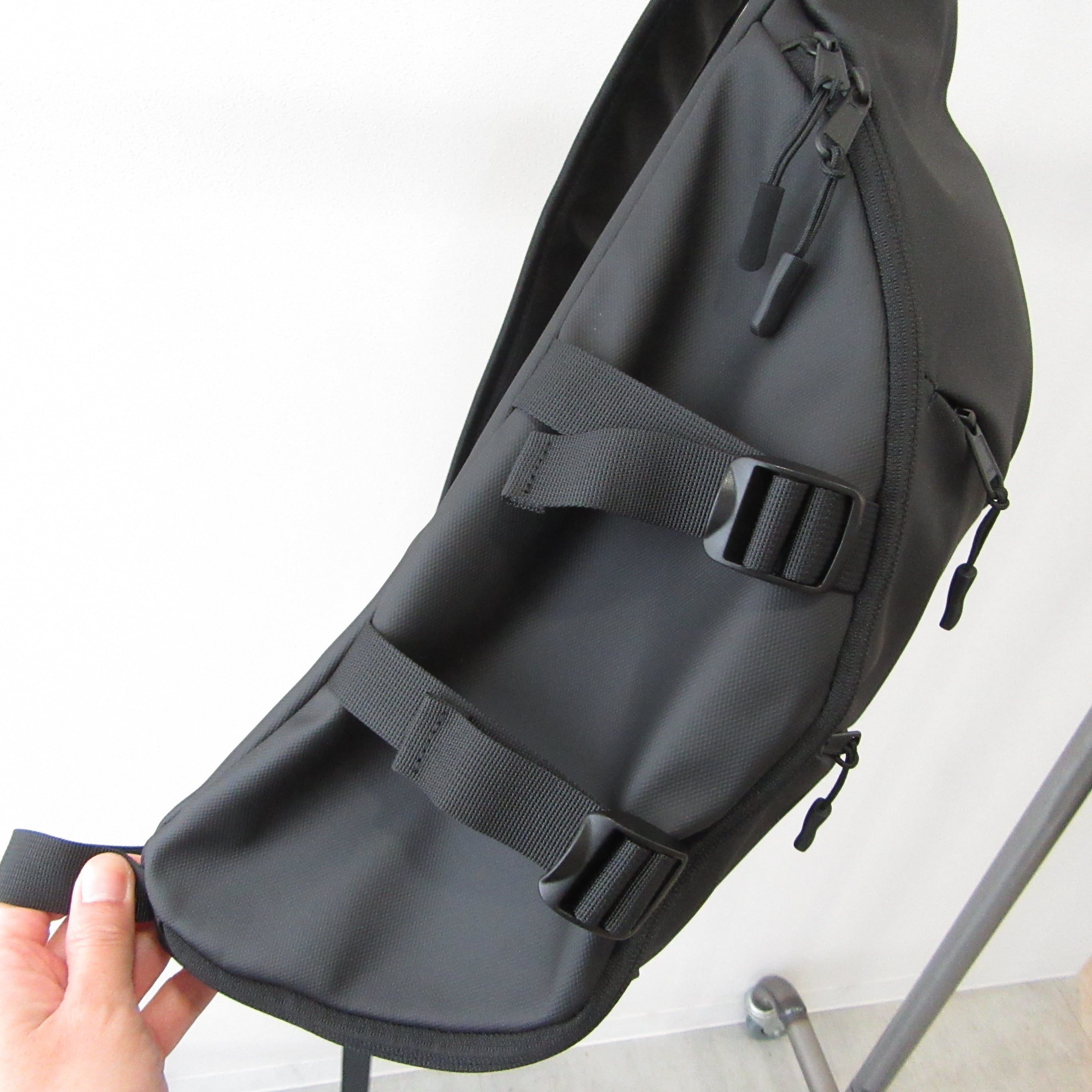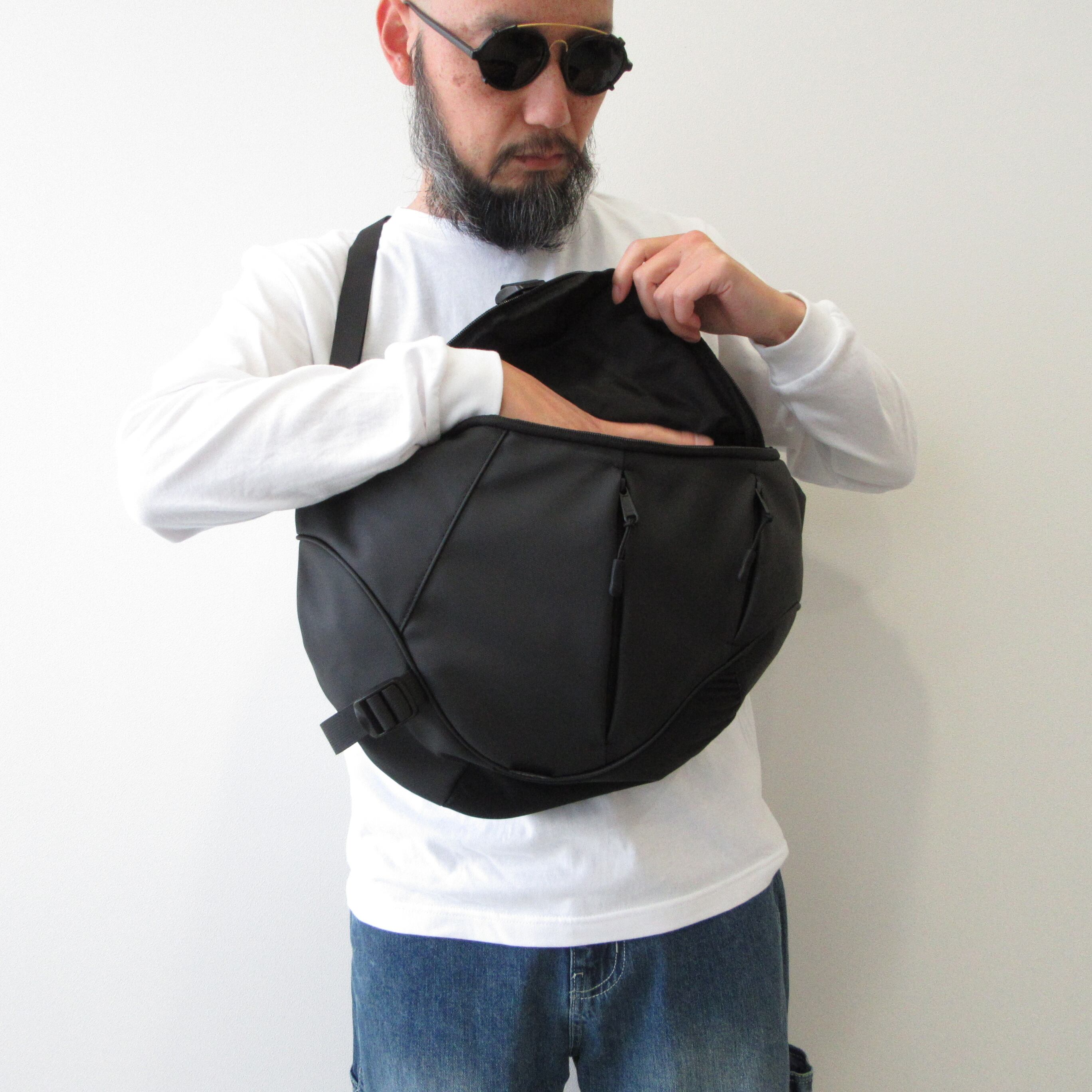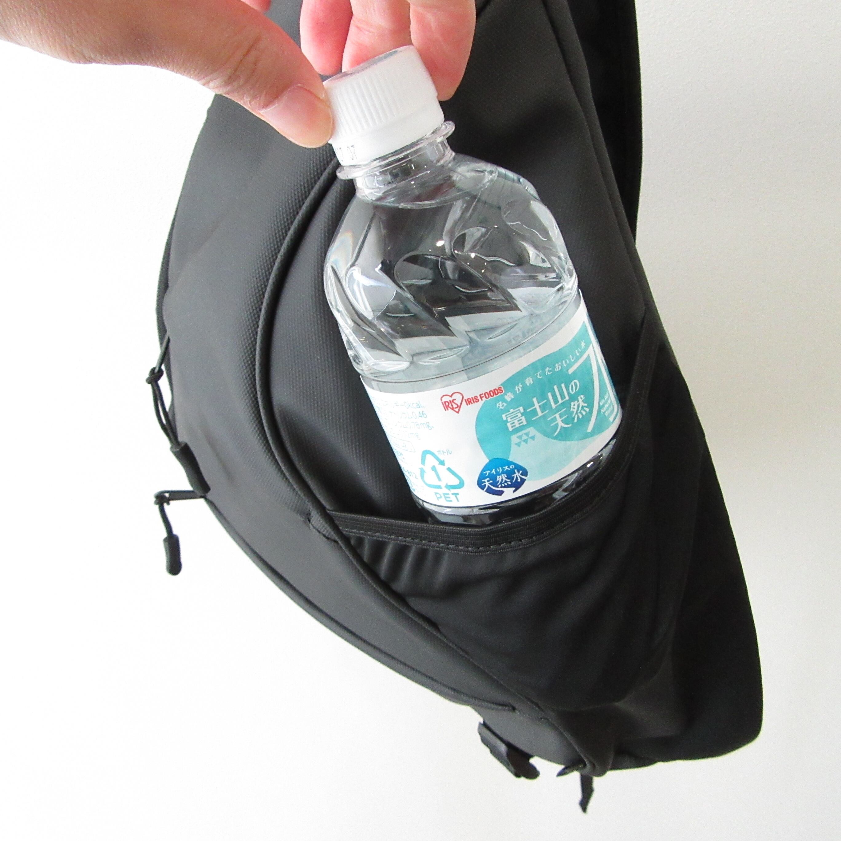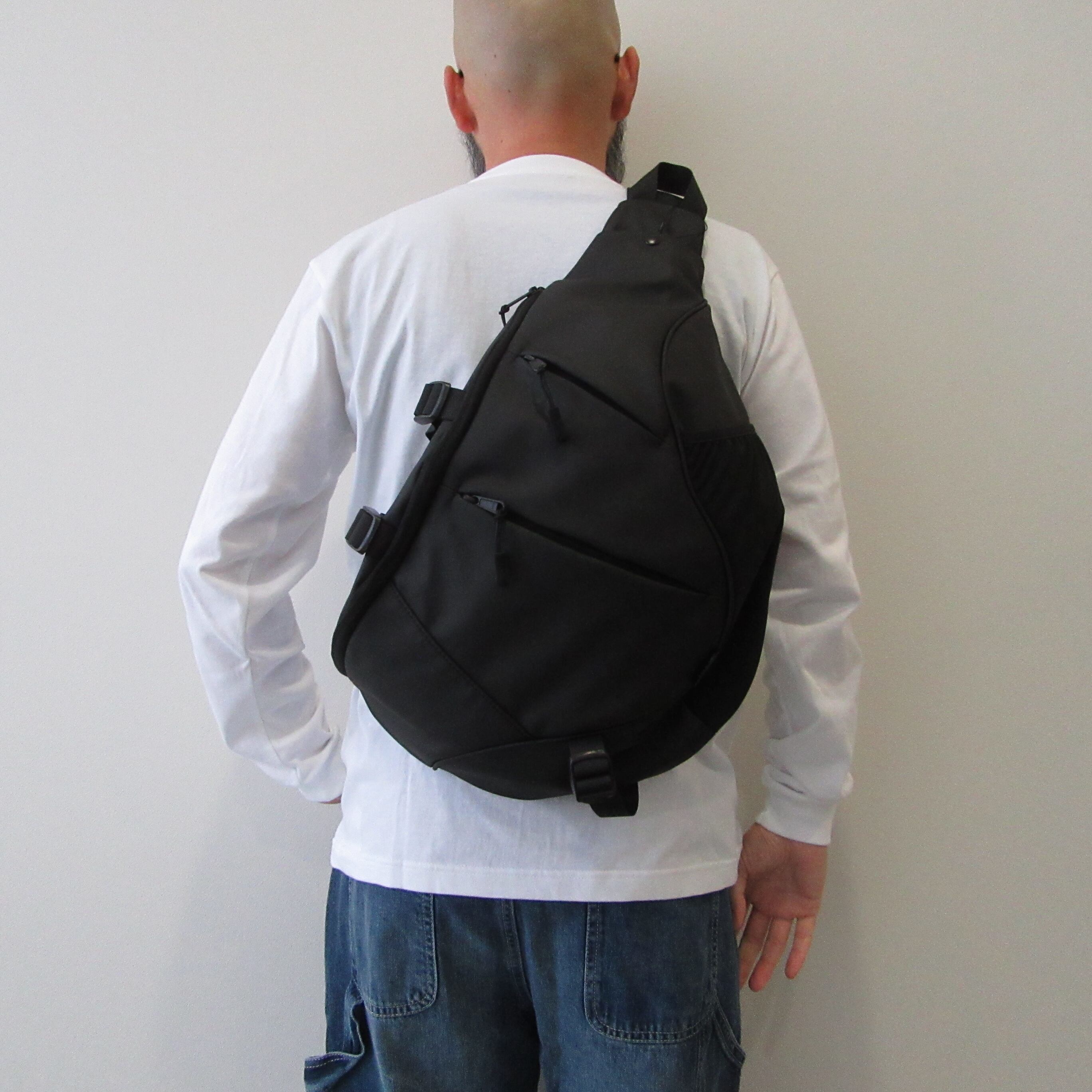身体にフィットするように作られたワンショルダーバッグ。マチ付きで、A4 サイズ、500ml ペットボトル、スマートフォン等が収納出来る大容量なサイ ズ感になっています。