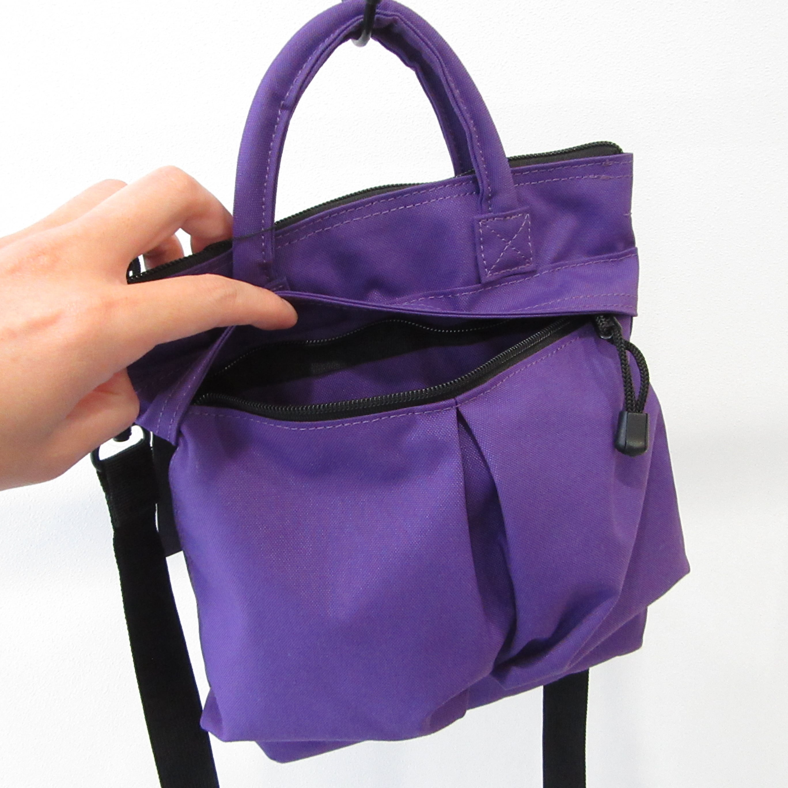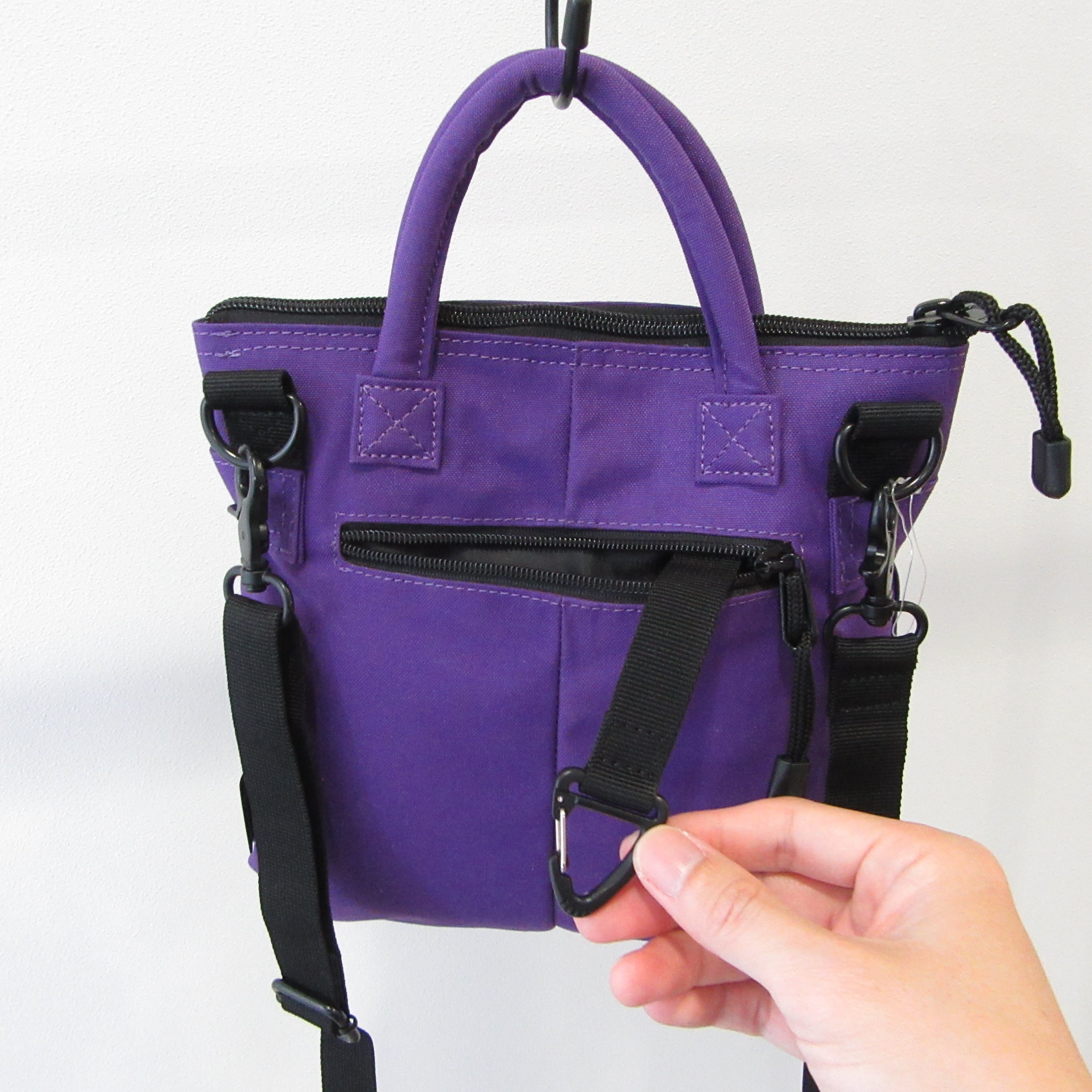 取り外しできるショルダーストラップ付きで、手持ち・肩掛け・斜め掛けとオールマイティーに使用いただけます。小型で軽量なので、ちょっとした外出やお子様用にもおすすめです。