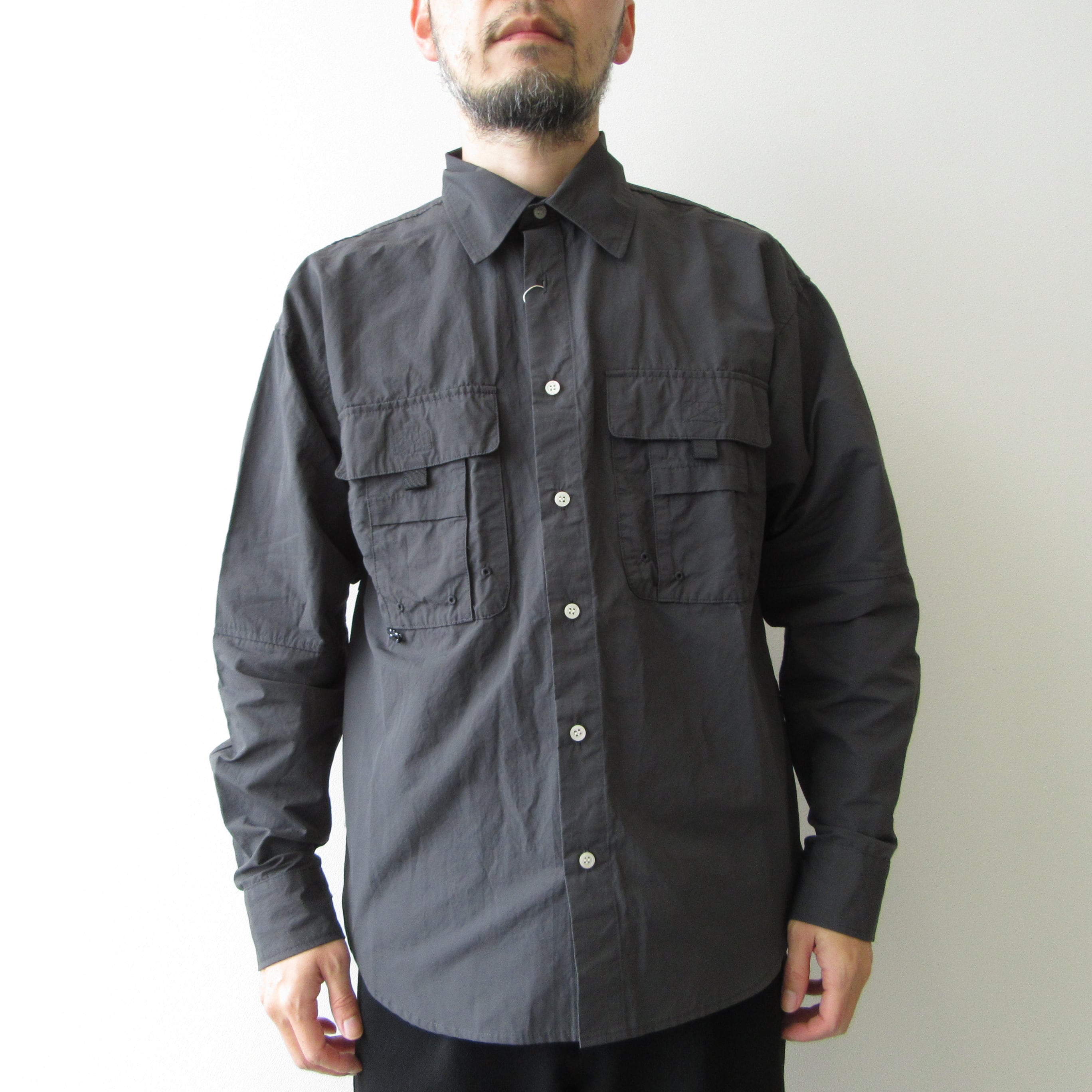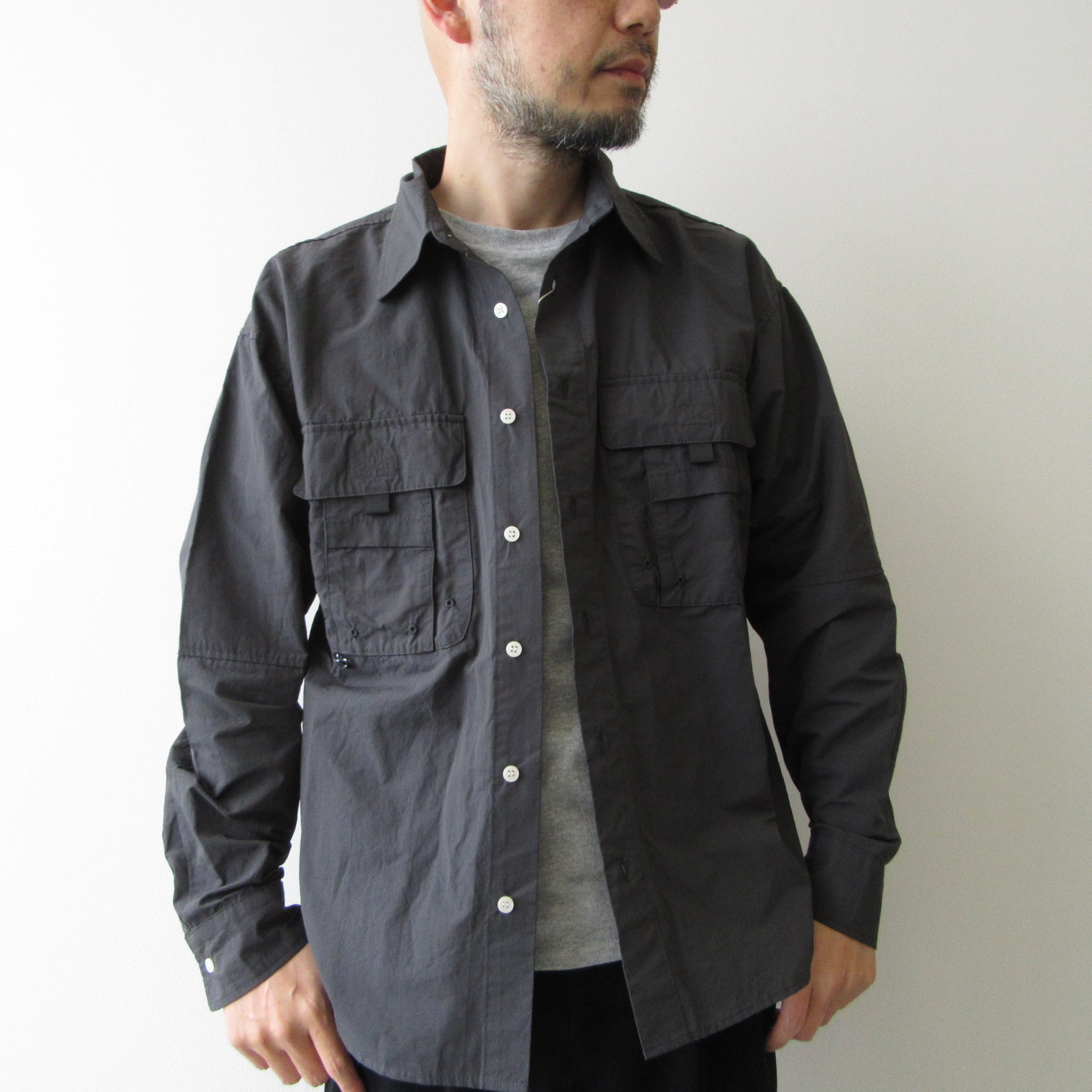 アウトドア仕様の利便性と耐久性を備えたバハマシャツ。コットン×ナイロンのさらりとした生地感で背面にはベンチレーションを備え春夏でも快適に着用できるようになっています。