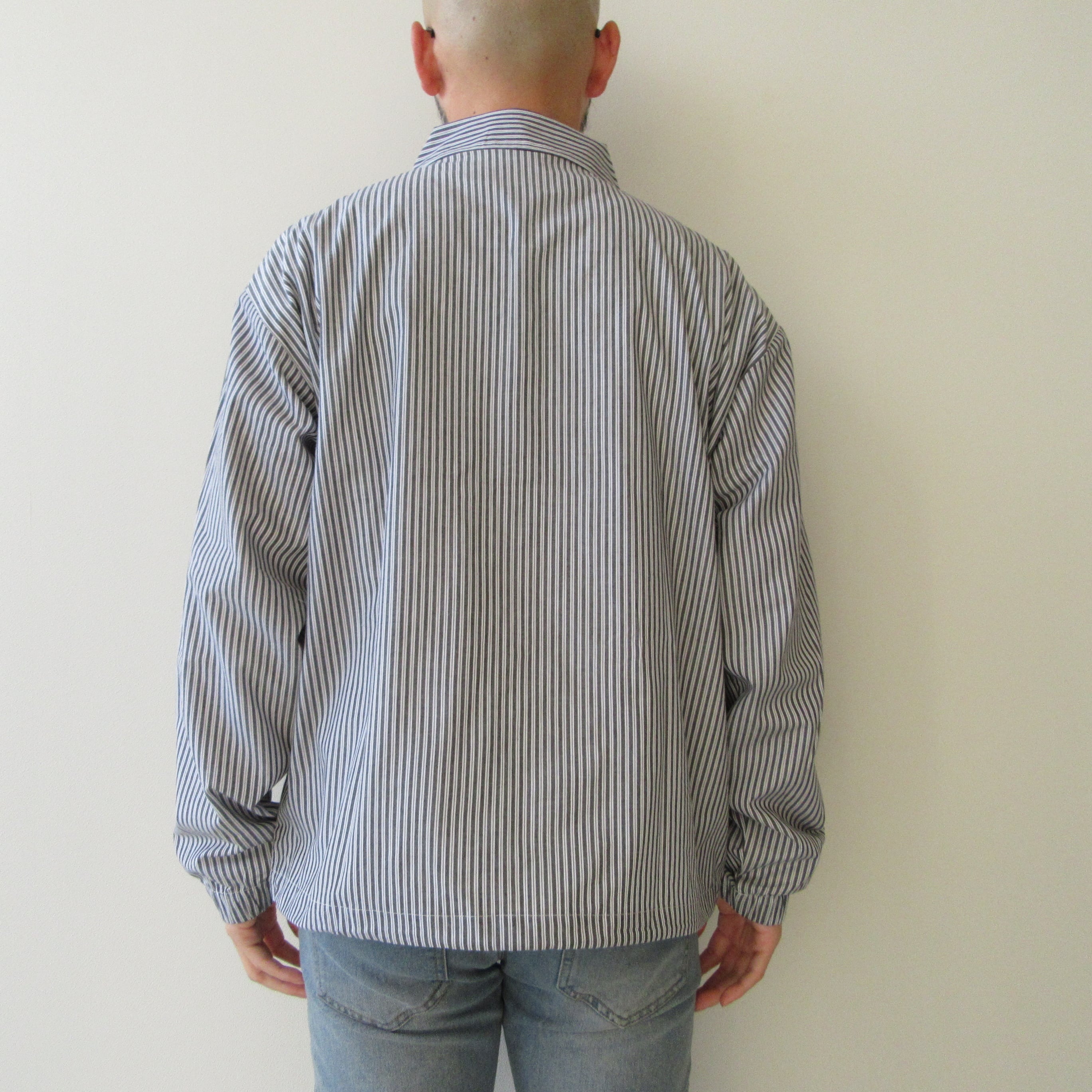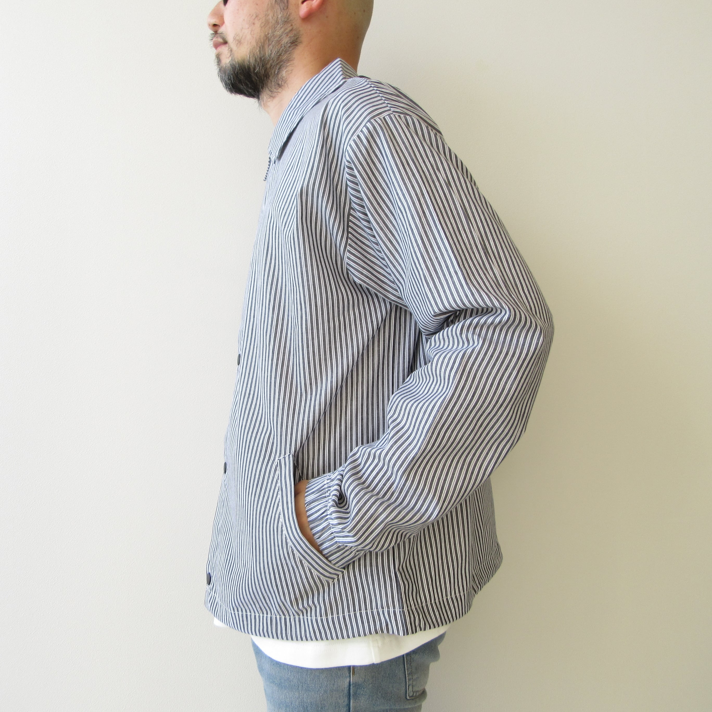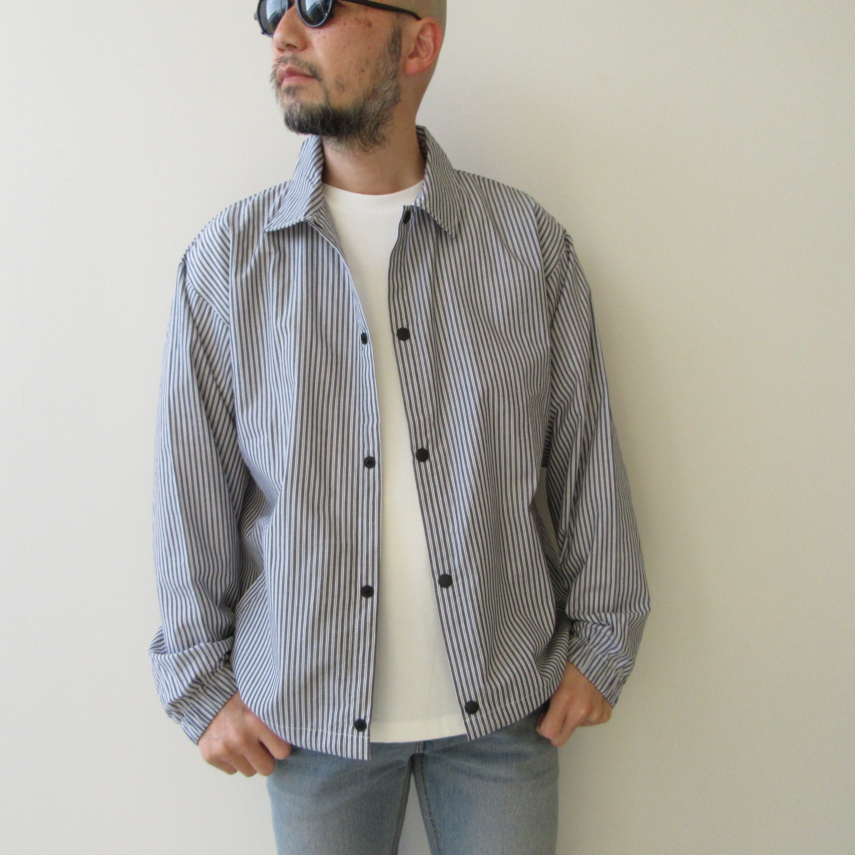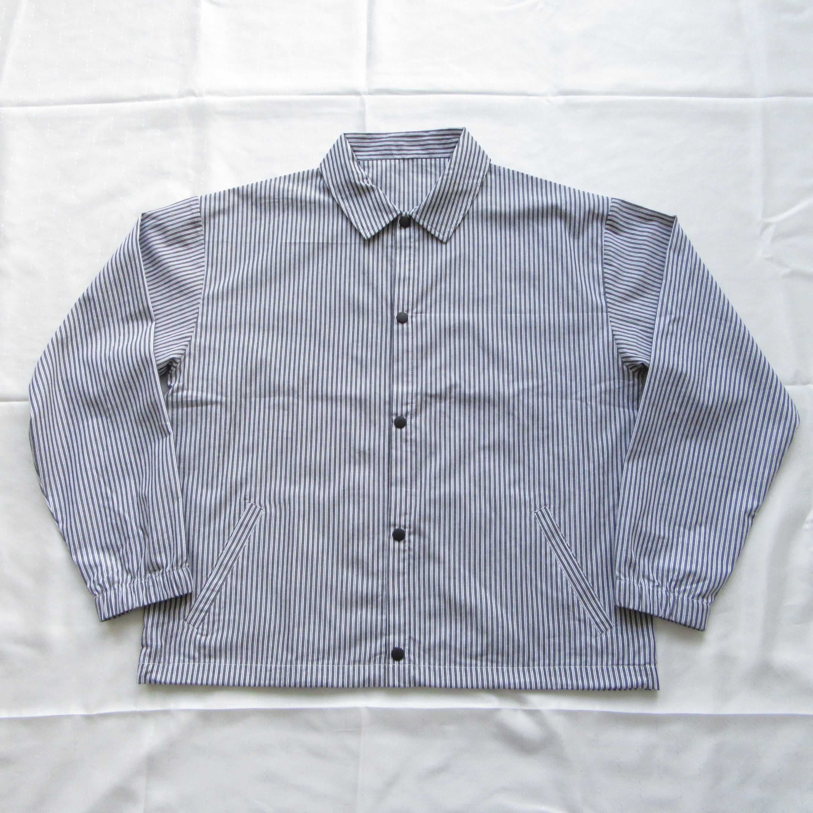 no name コーチシャツジャケット グレーストライプ