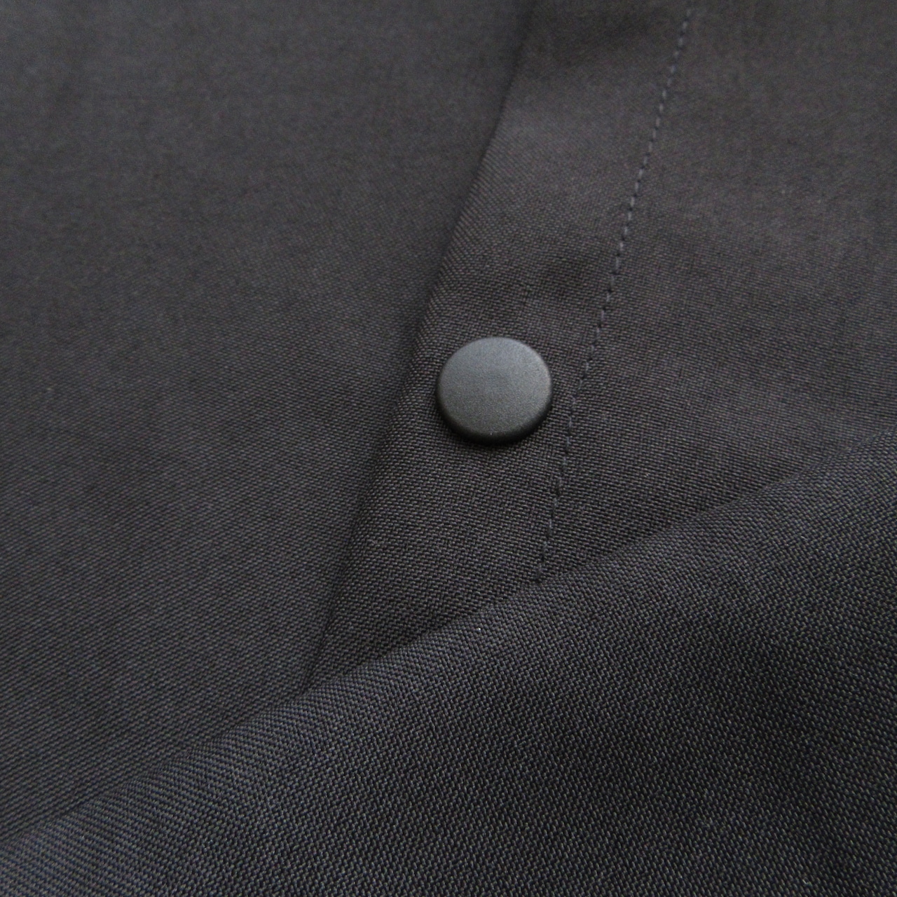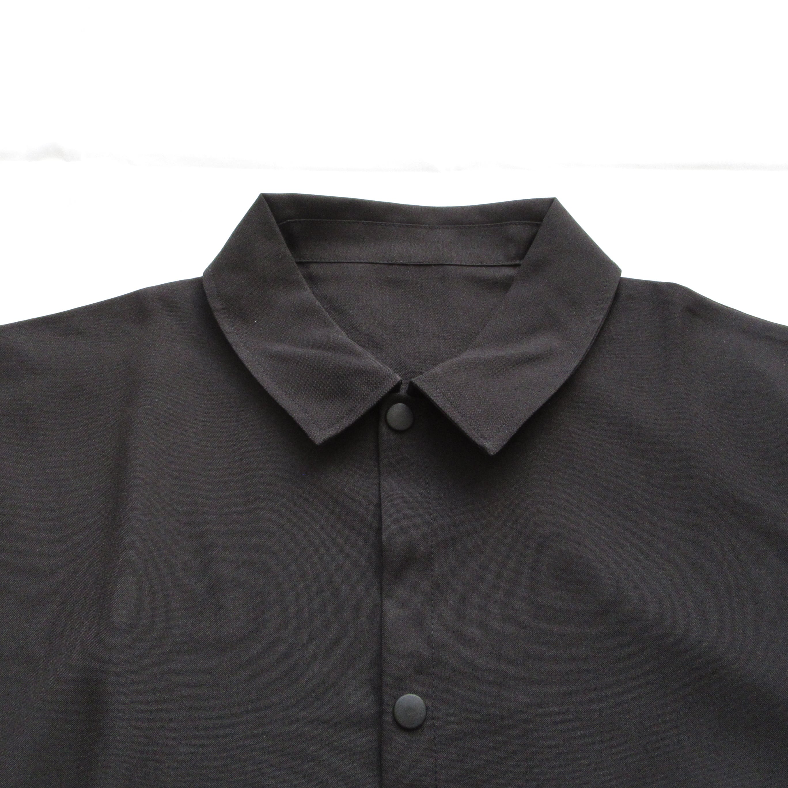 ジャケットの見た目にシャツの軽い着心地が合わさったシャツジャケット、シックなブラックでツヤ・とろみのある素材感が特徴です。