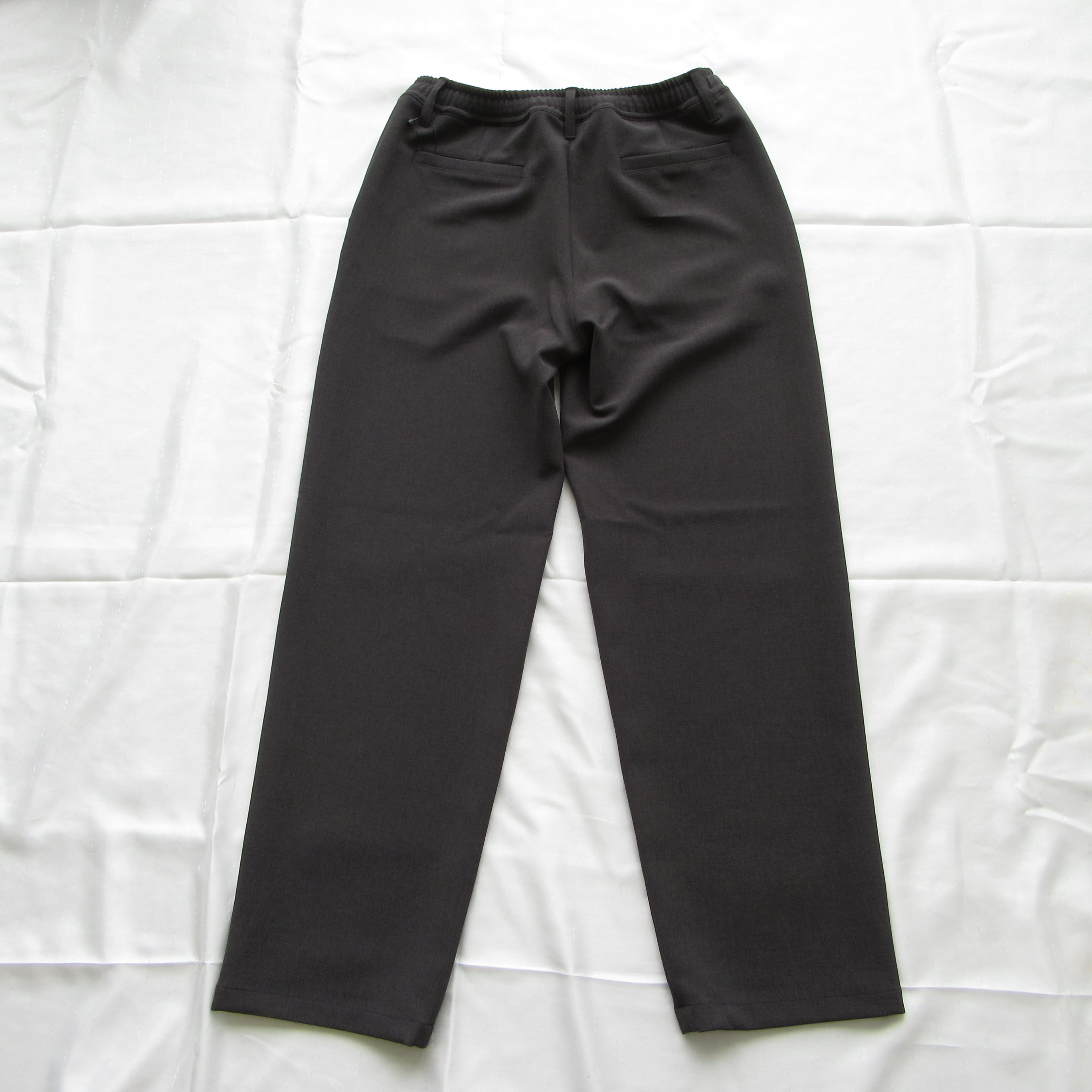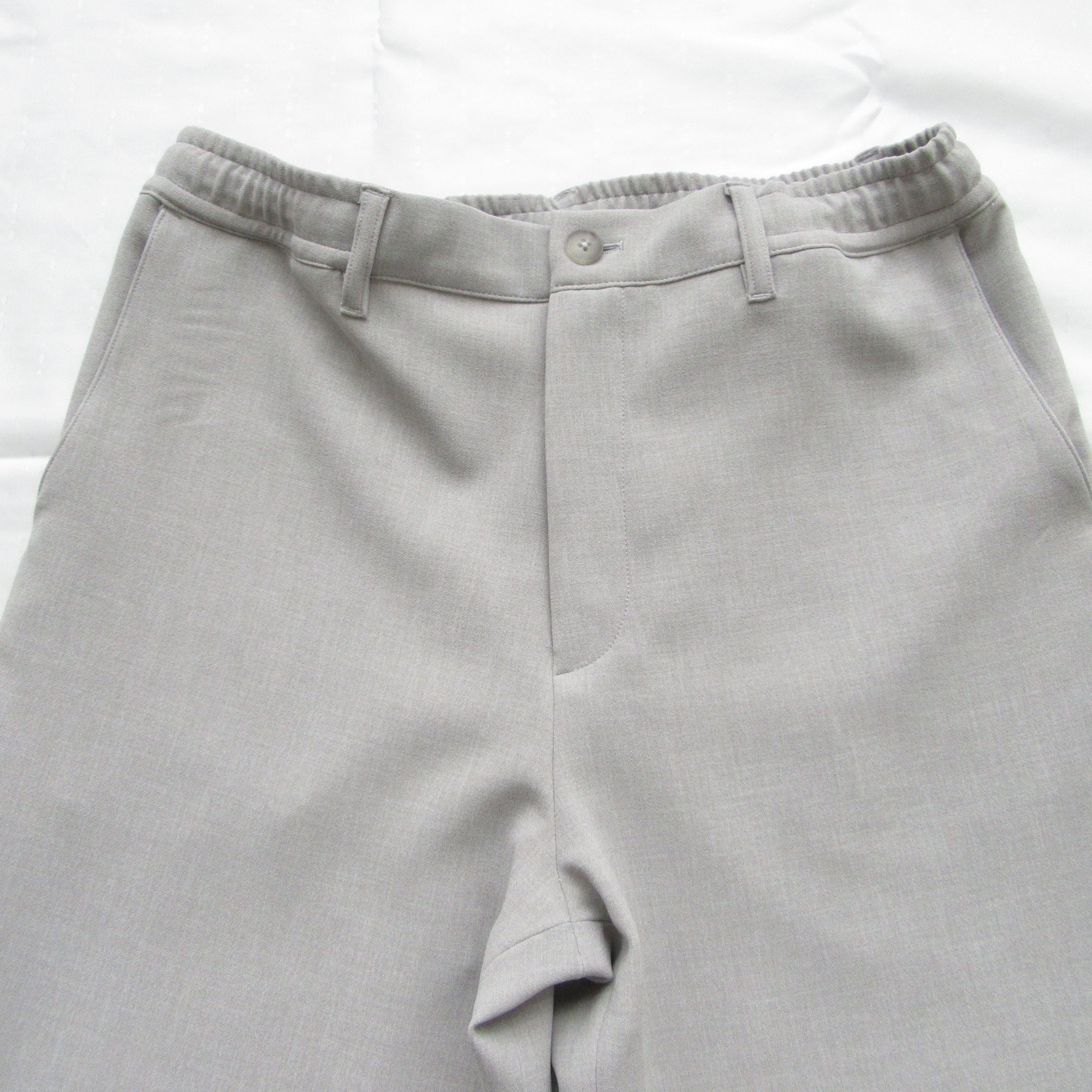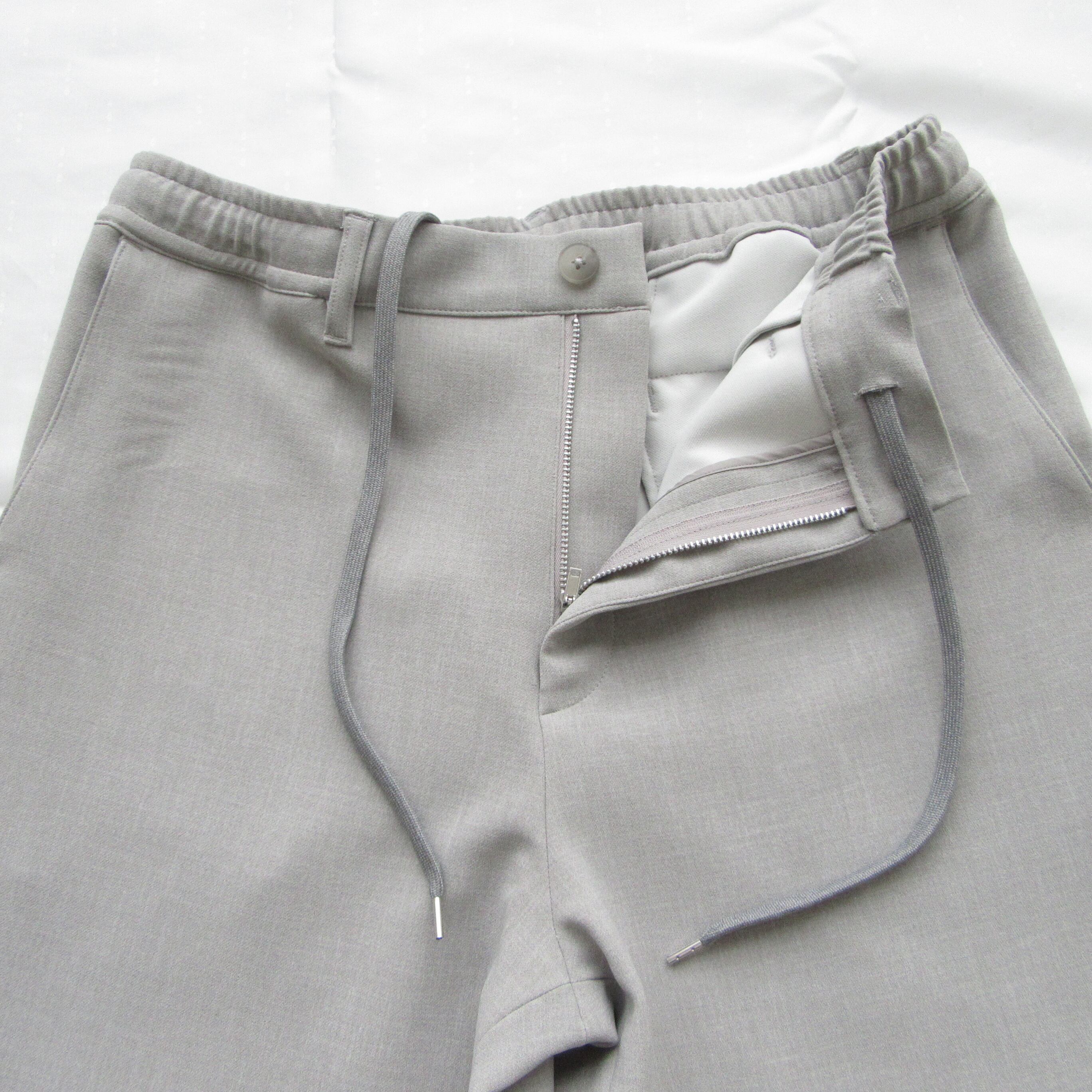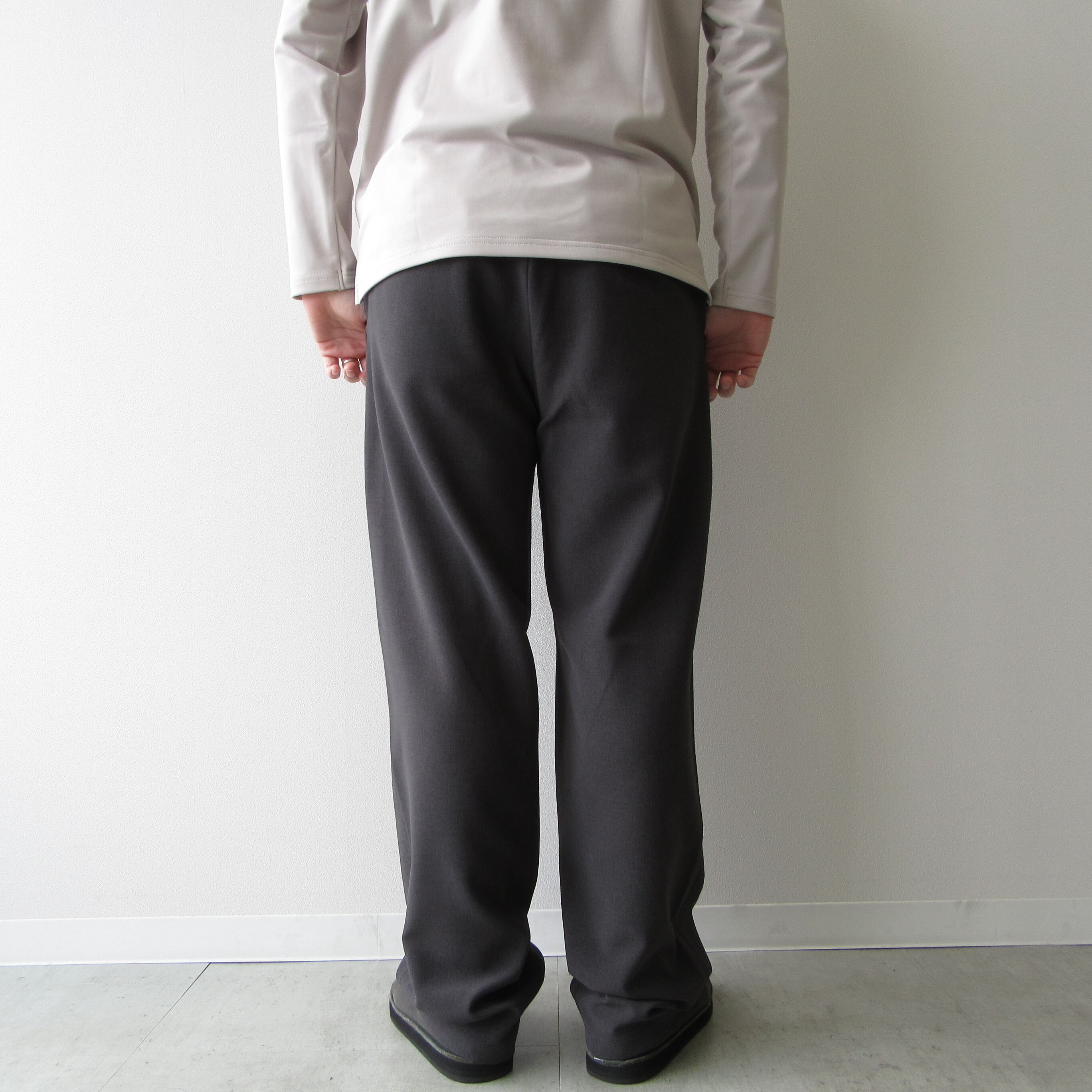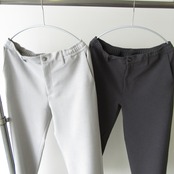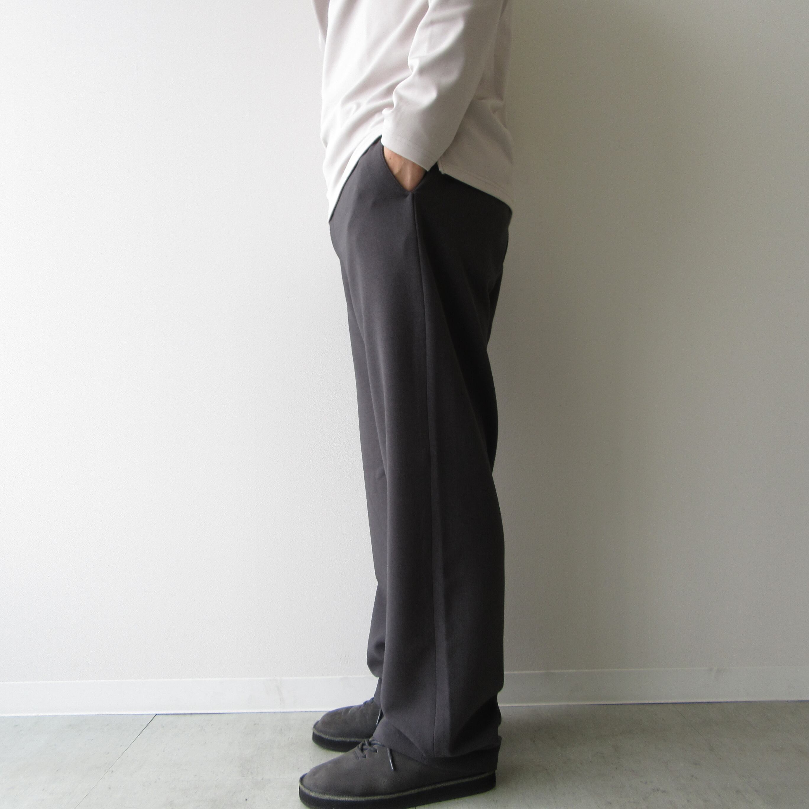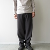 表地は梳毛調、裏地はジャージ生地のダブルクロス仕様となっておりリラックスした穿き心地ながらも品良くまとまったパンツです。