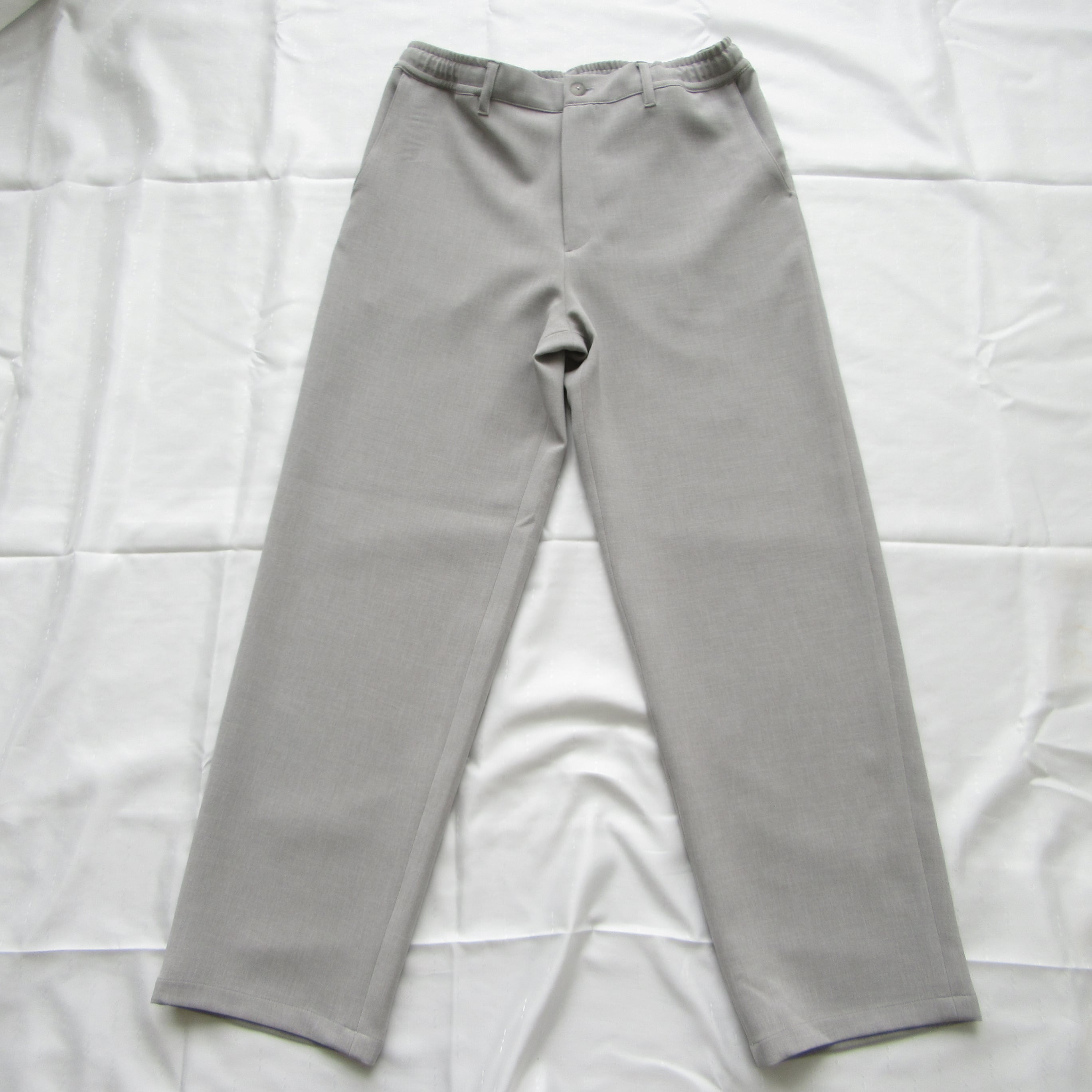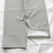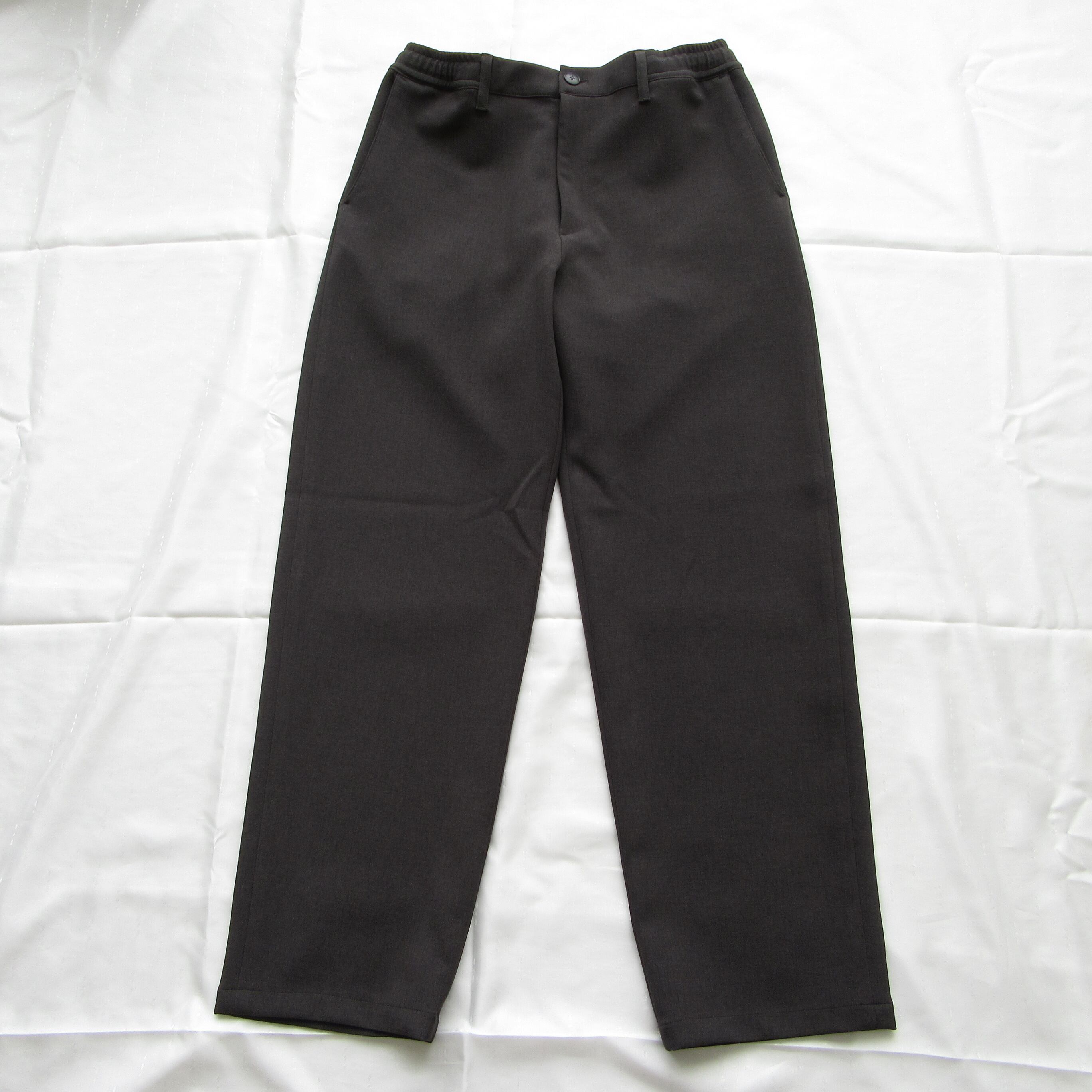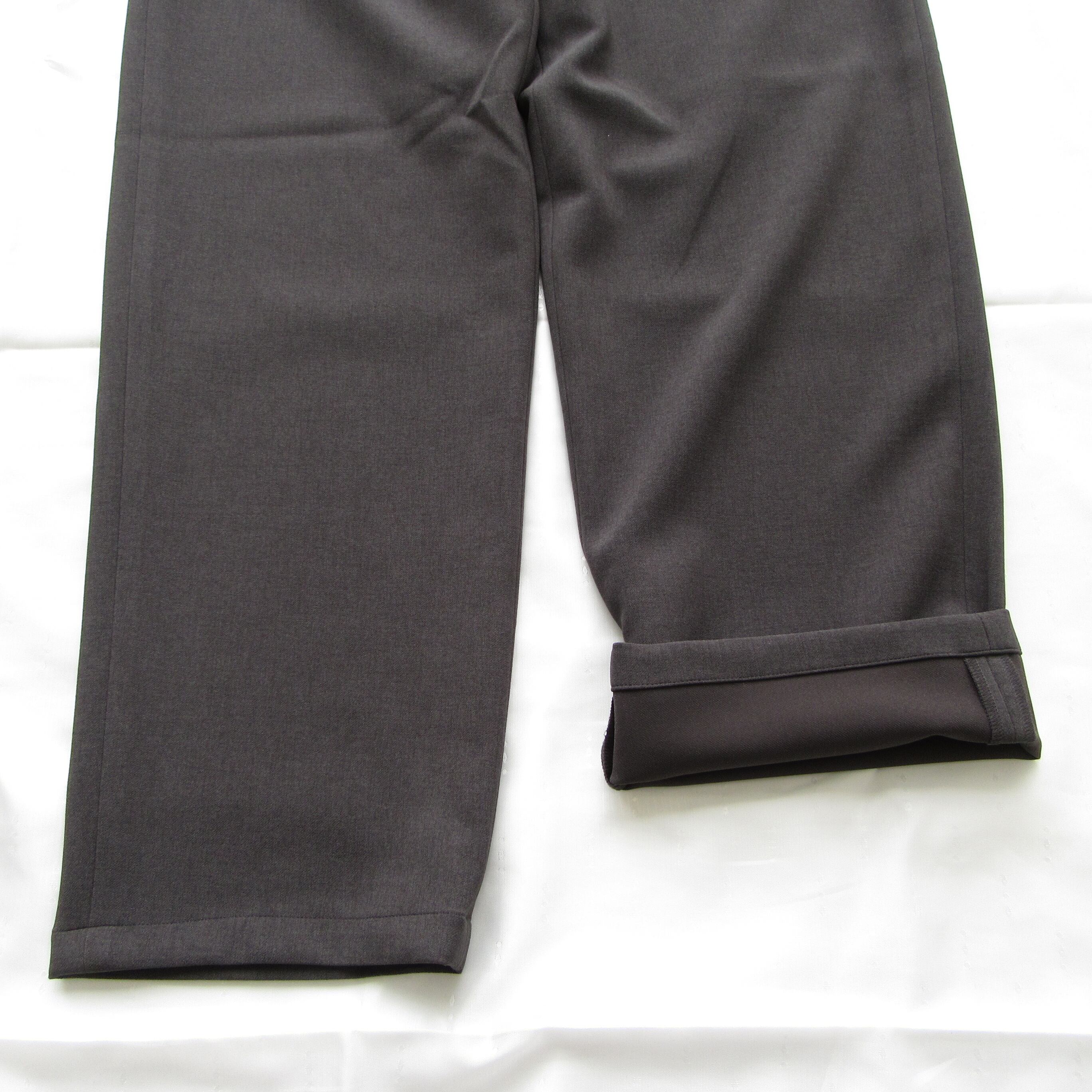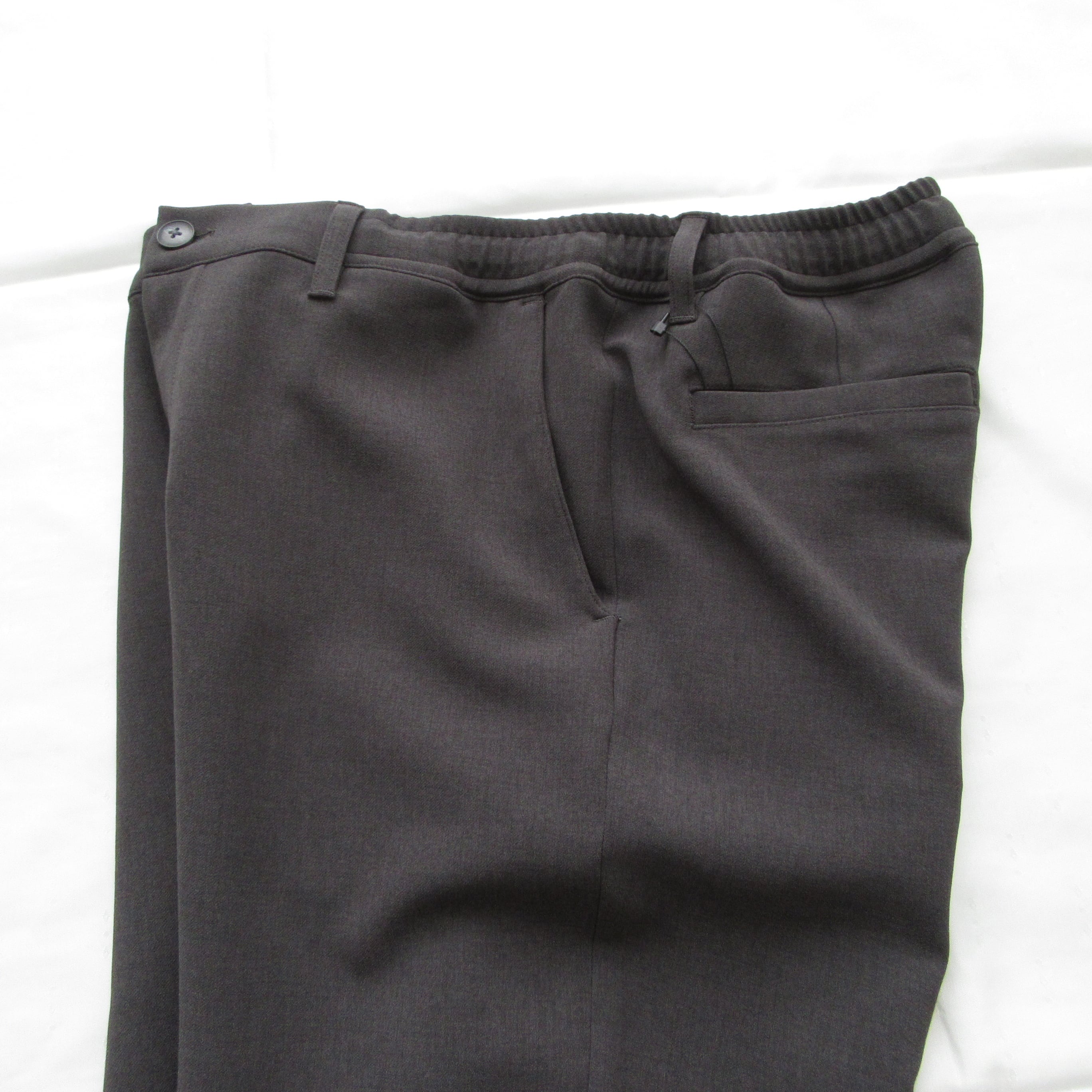表地は梳毛調、裏地はジャージ生地のダブルクロス仕様となっておりリラックスした穿き心地ながらも品良くまとまったパンツです。