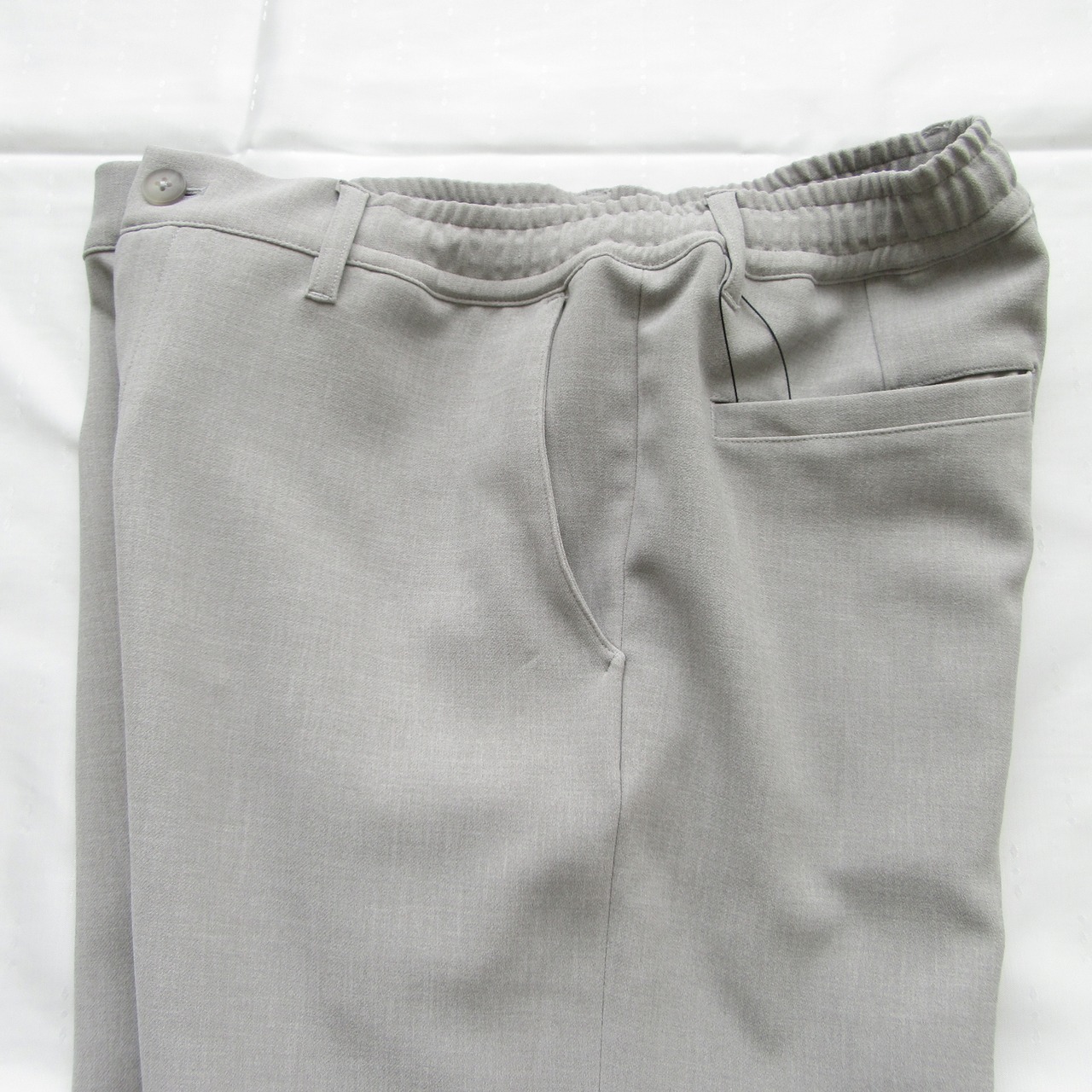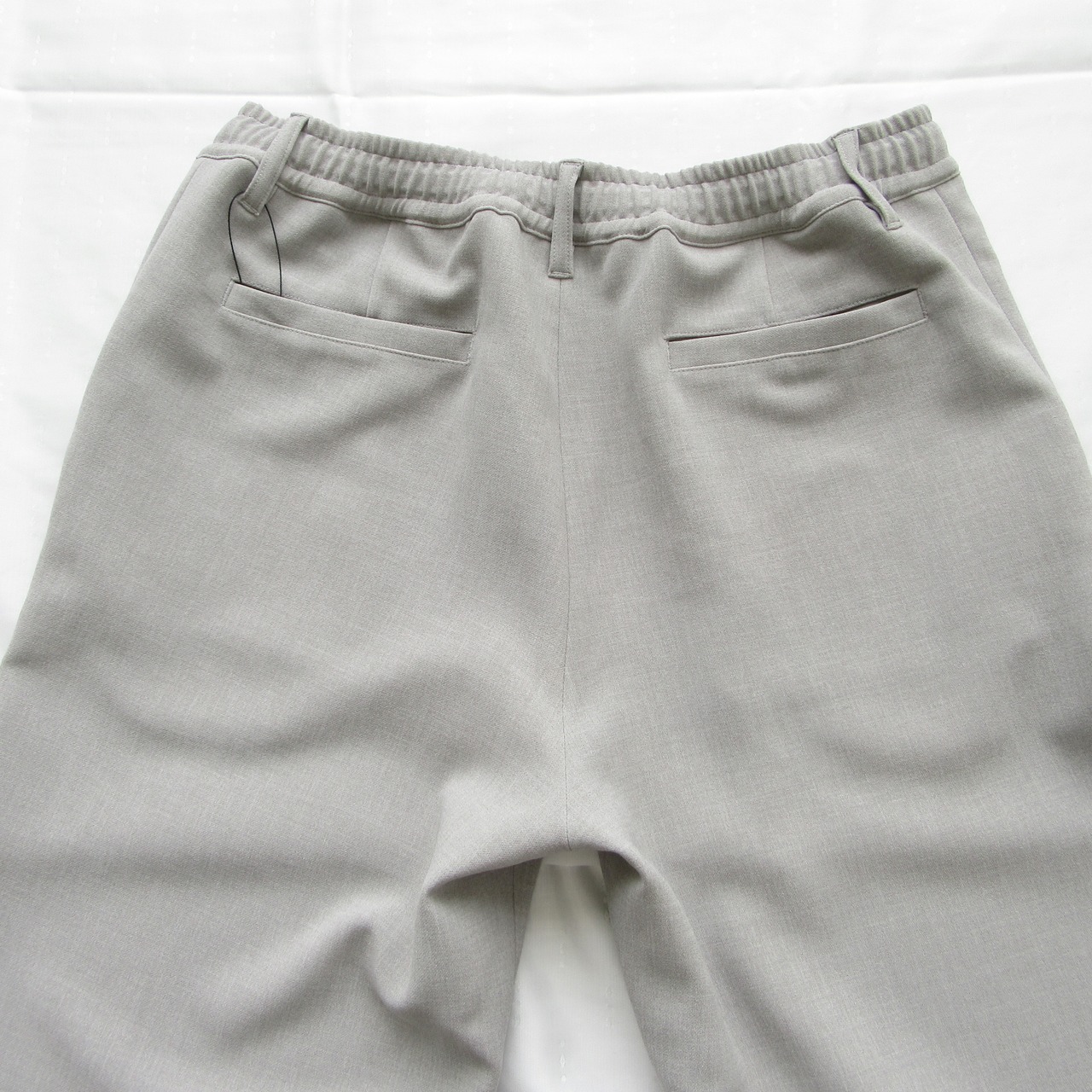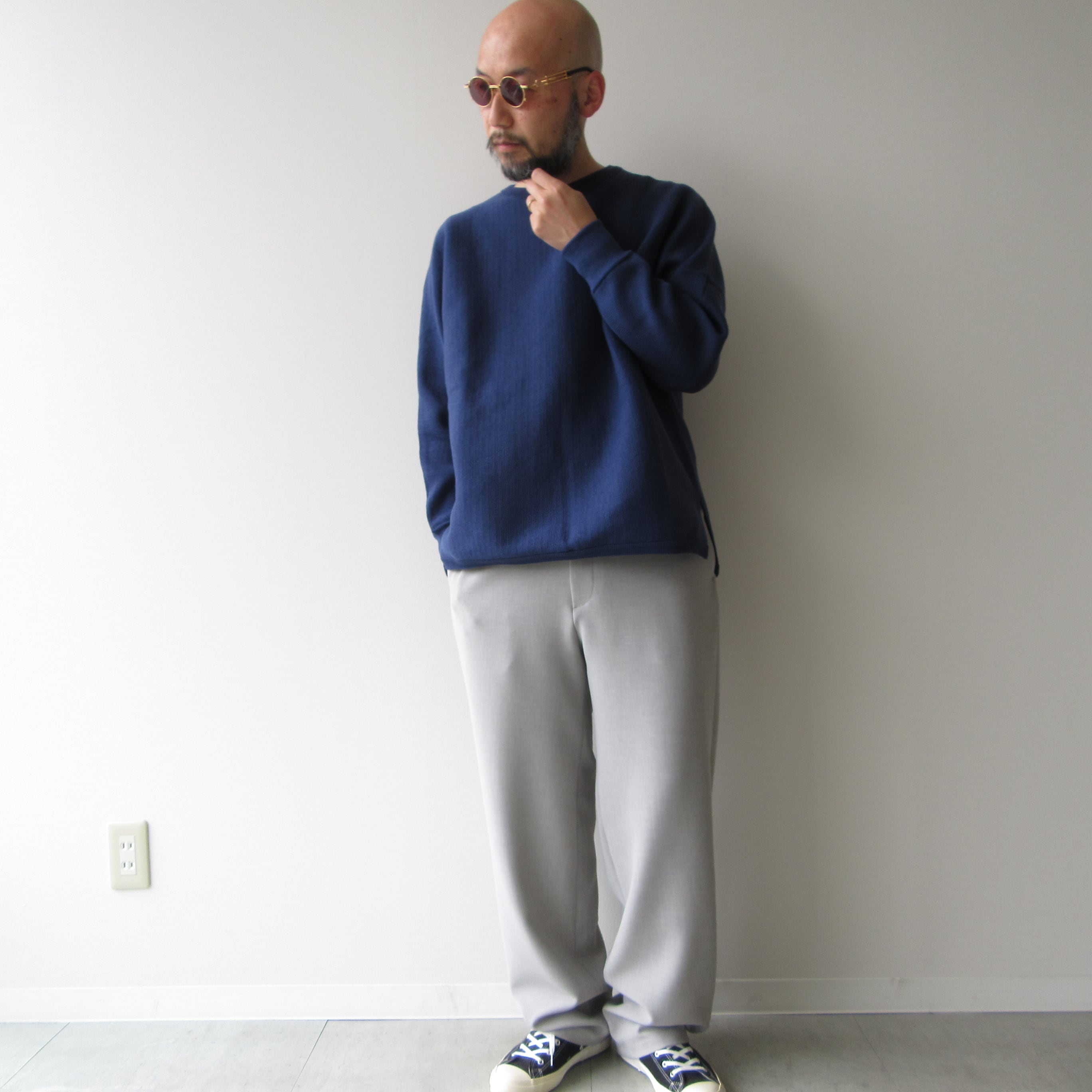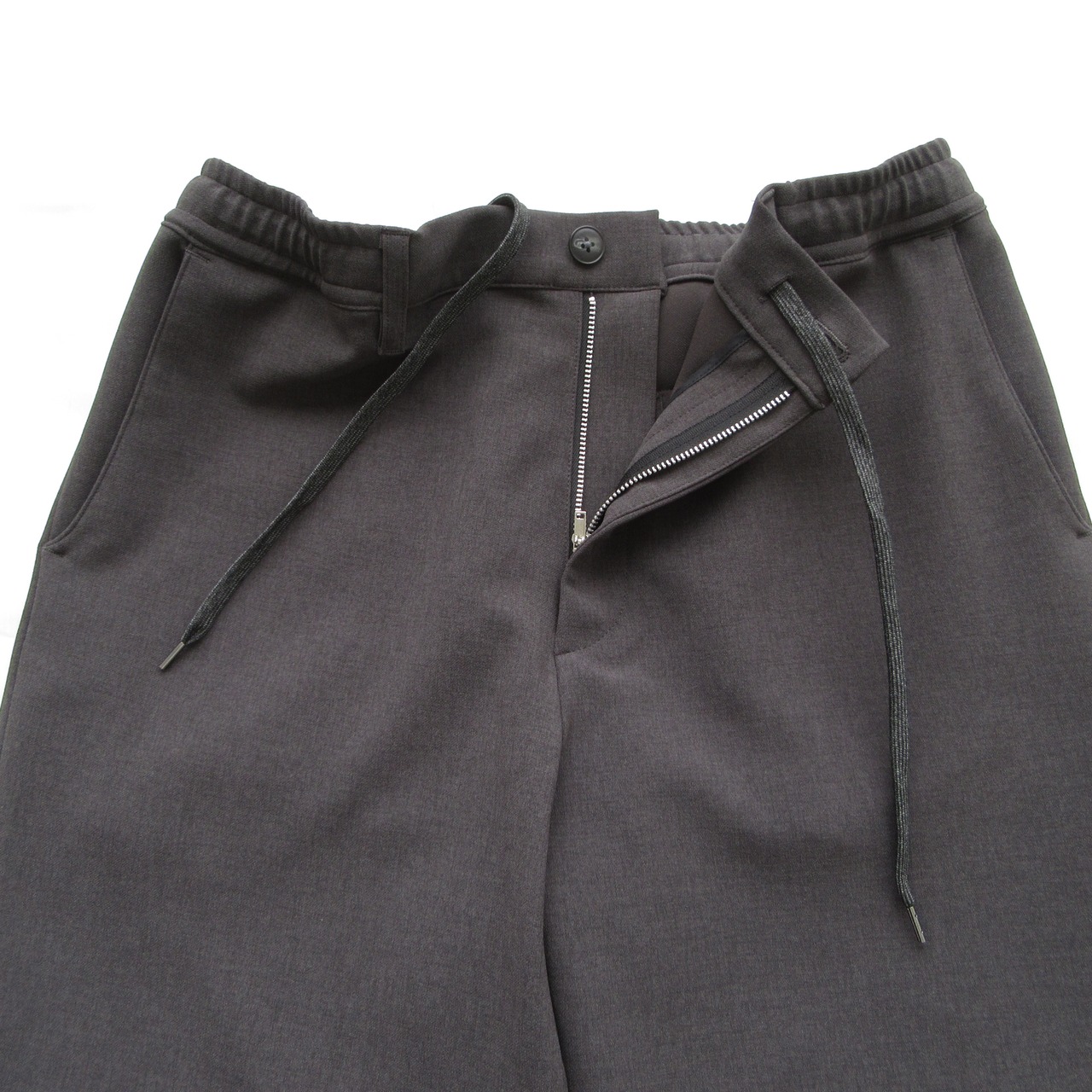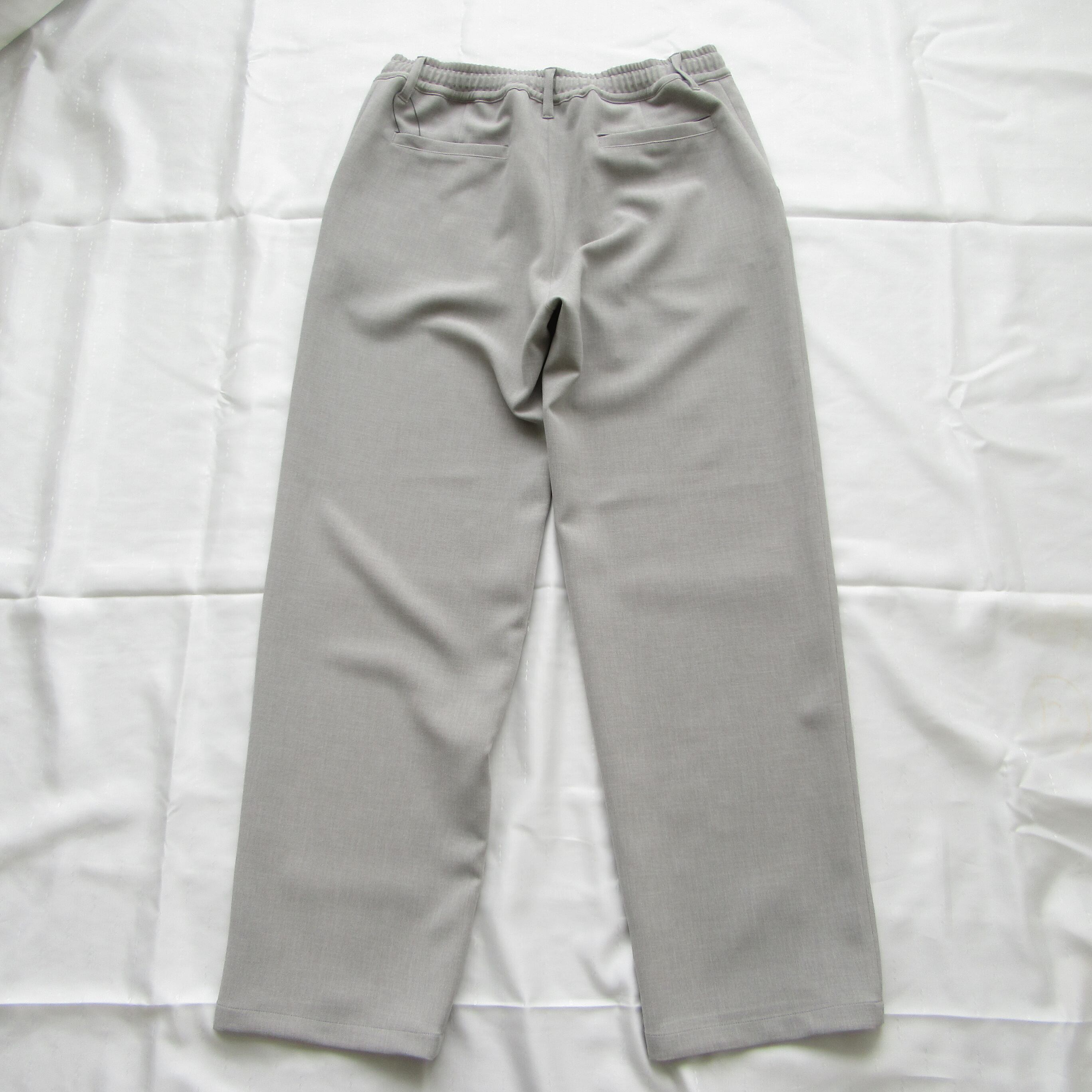 表地は梳毛調、裏地はジャージ生地のダブルクロス仕様となっておりリラックスした穿き心地ながらも品良くまとまったパンツです。