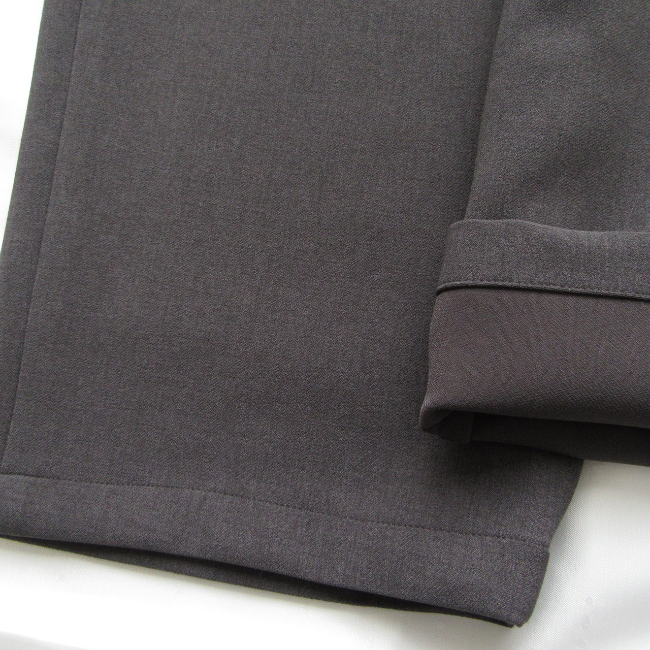 高品質なスーツなどに使われる梳毛(そもう)生地を再現した特殊繊維を使用しており、ウール調の質感にストレッチ性も併せ持った素材で品の良さを感じられるアイテムです。