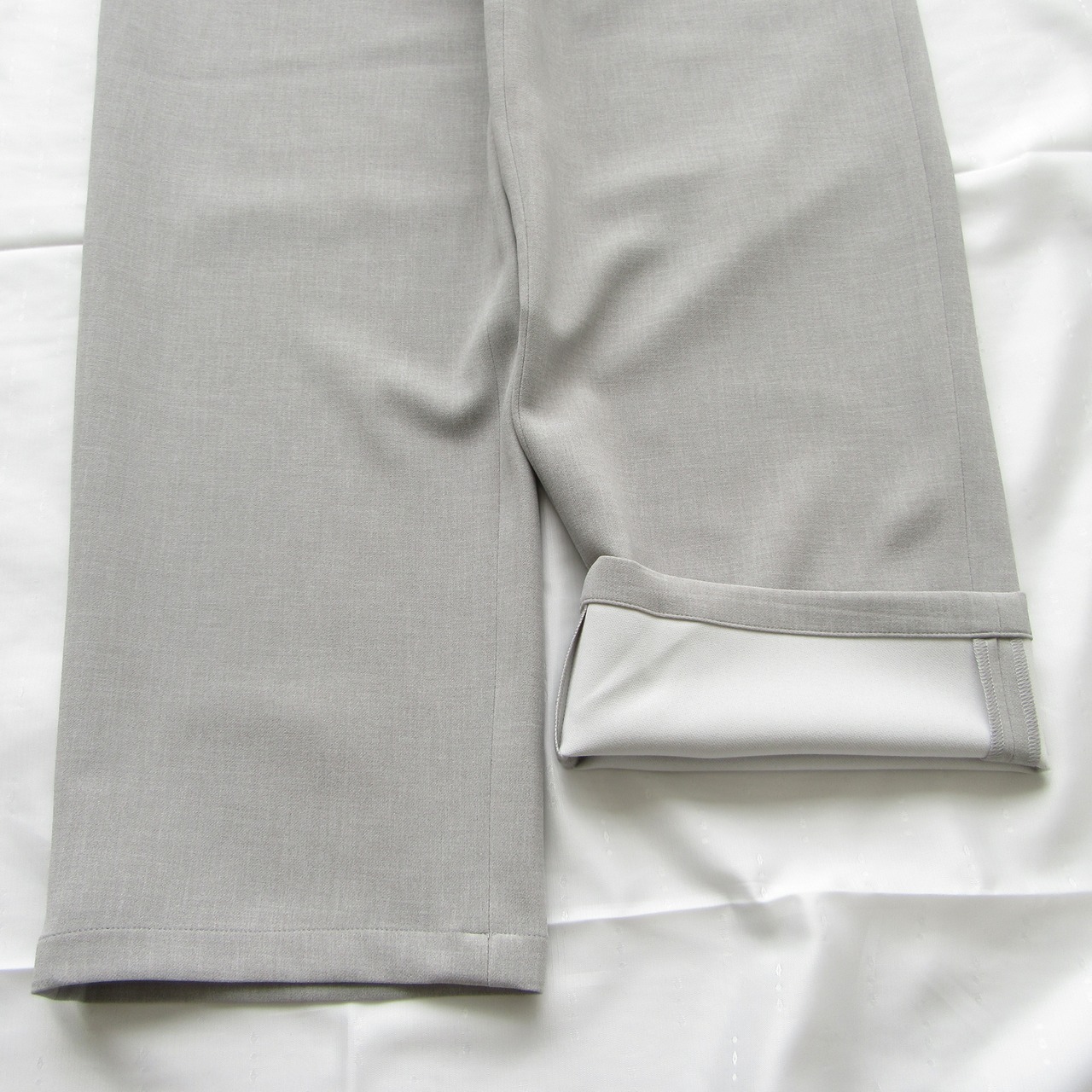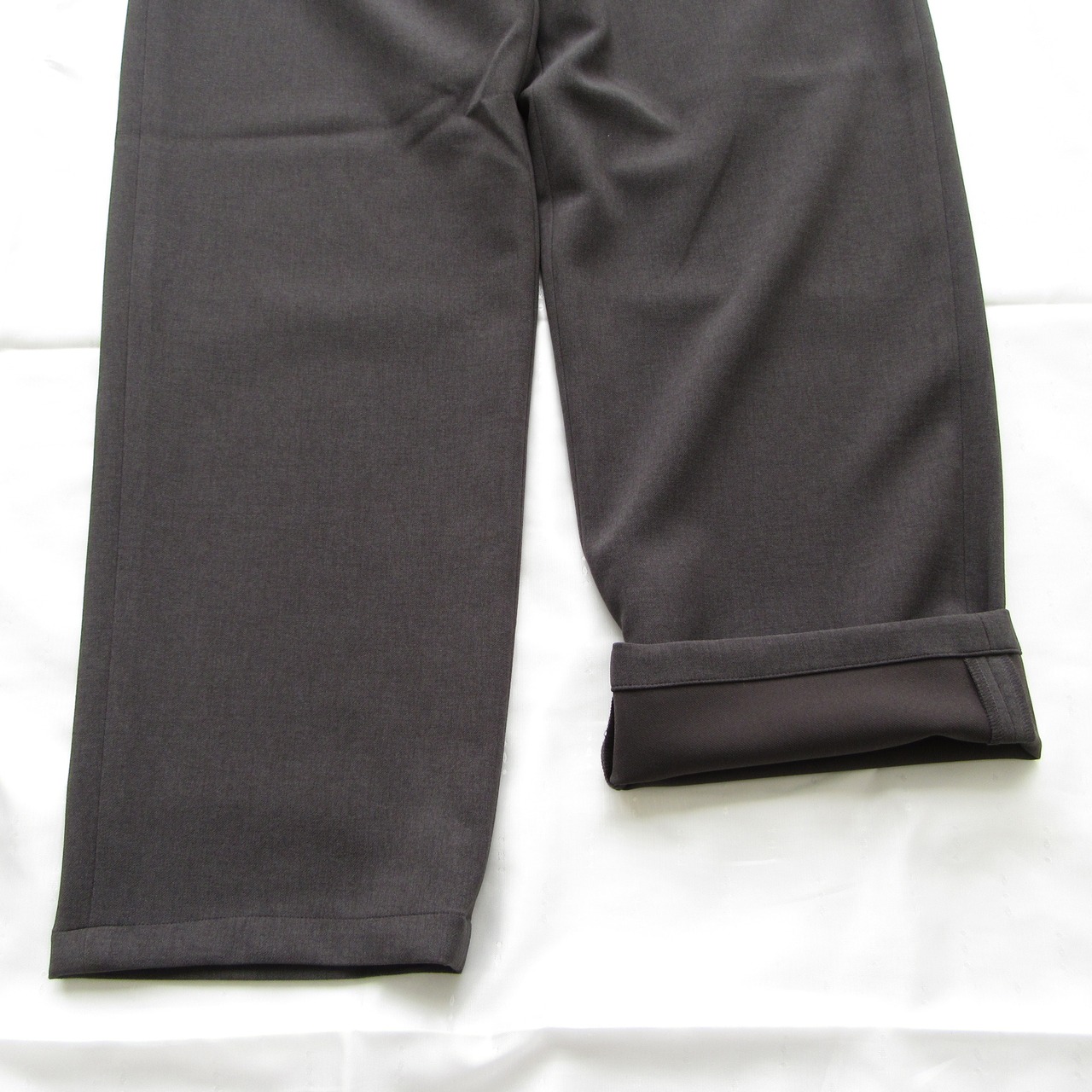 極端なワイドシルエットではなく大人が穿いても野暮ったく見えず綺麗なシルエットに仕上げています。