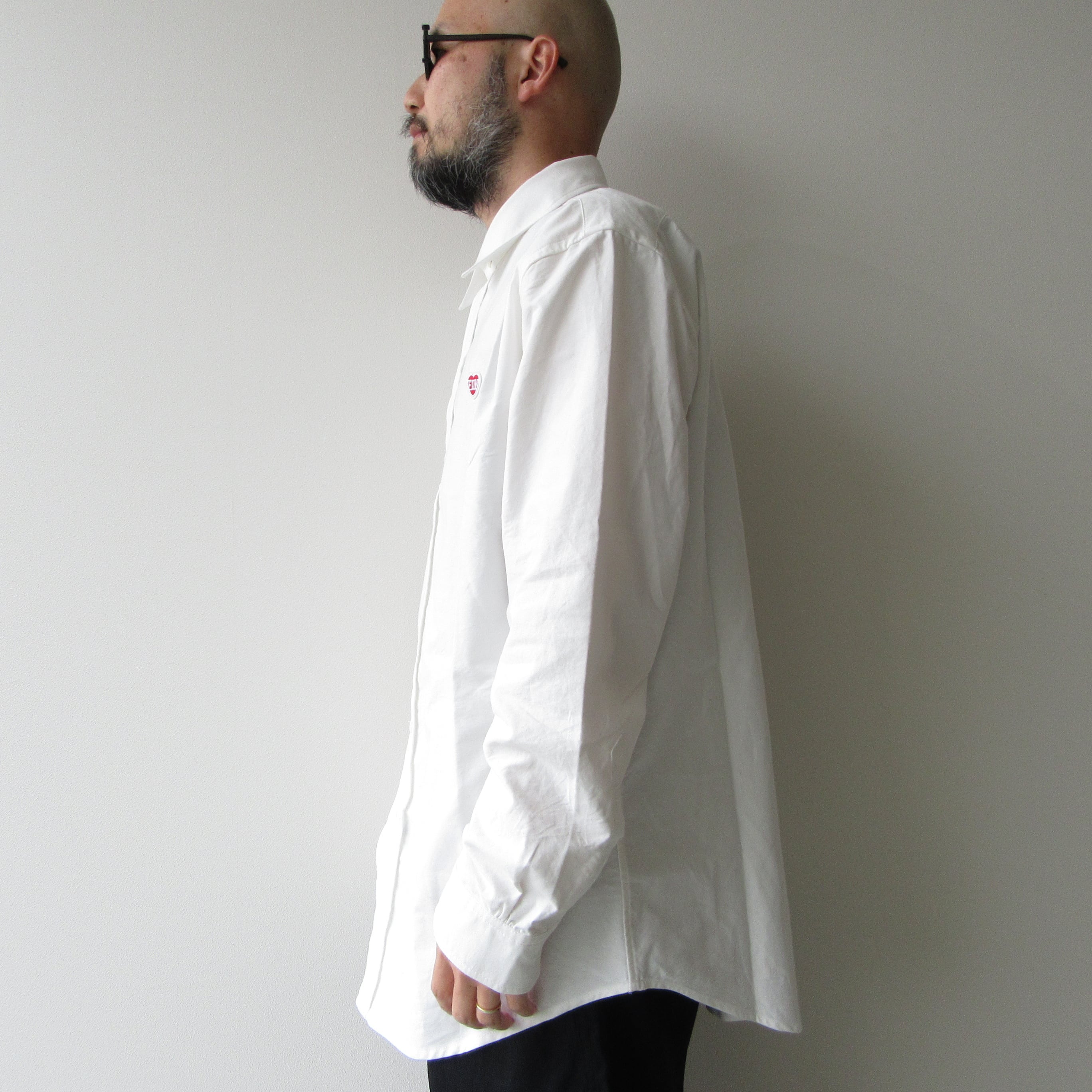 ハートに「FUN」と入ったアイコンをワンポイントあしらったオックスフォードシャツ。