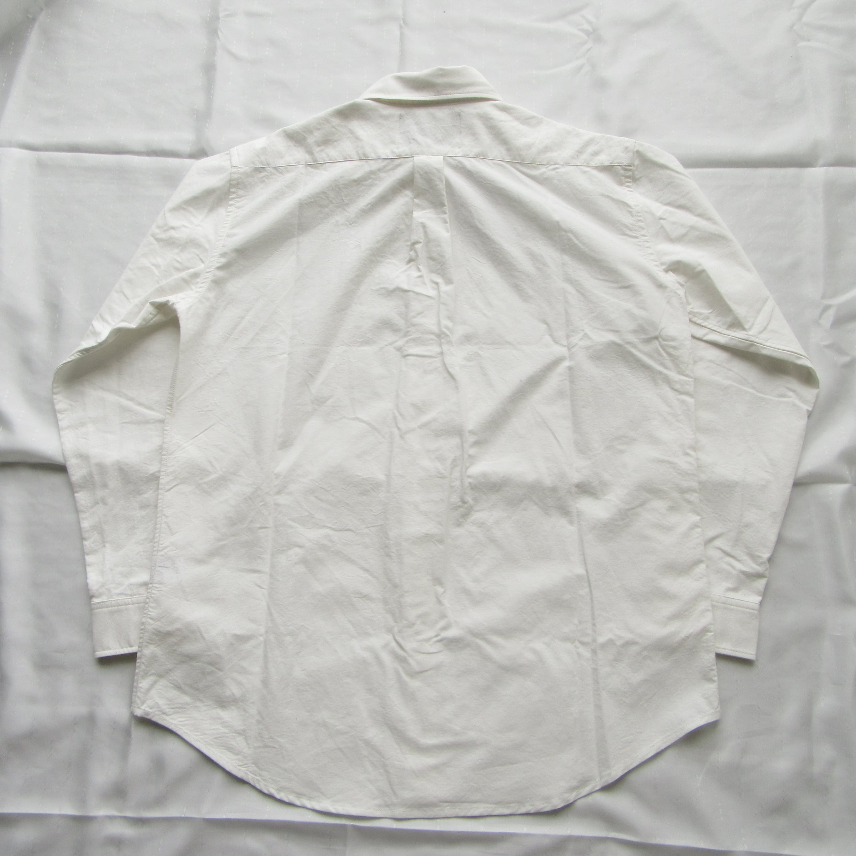 ドレスシャツのような着丈の長いデザインで、シルエットはボックスシルエットを採用し身幅も広めなオーソドックスなシルエットとなっています。