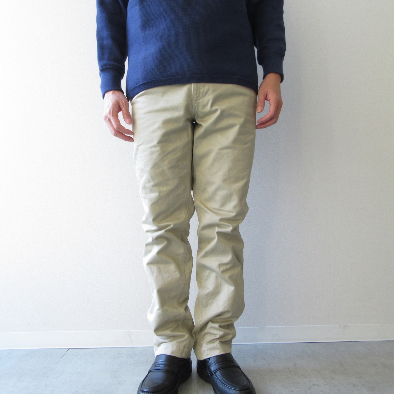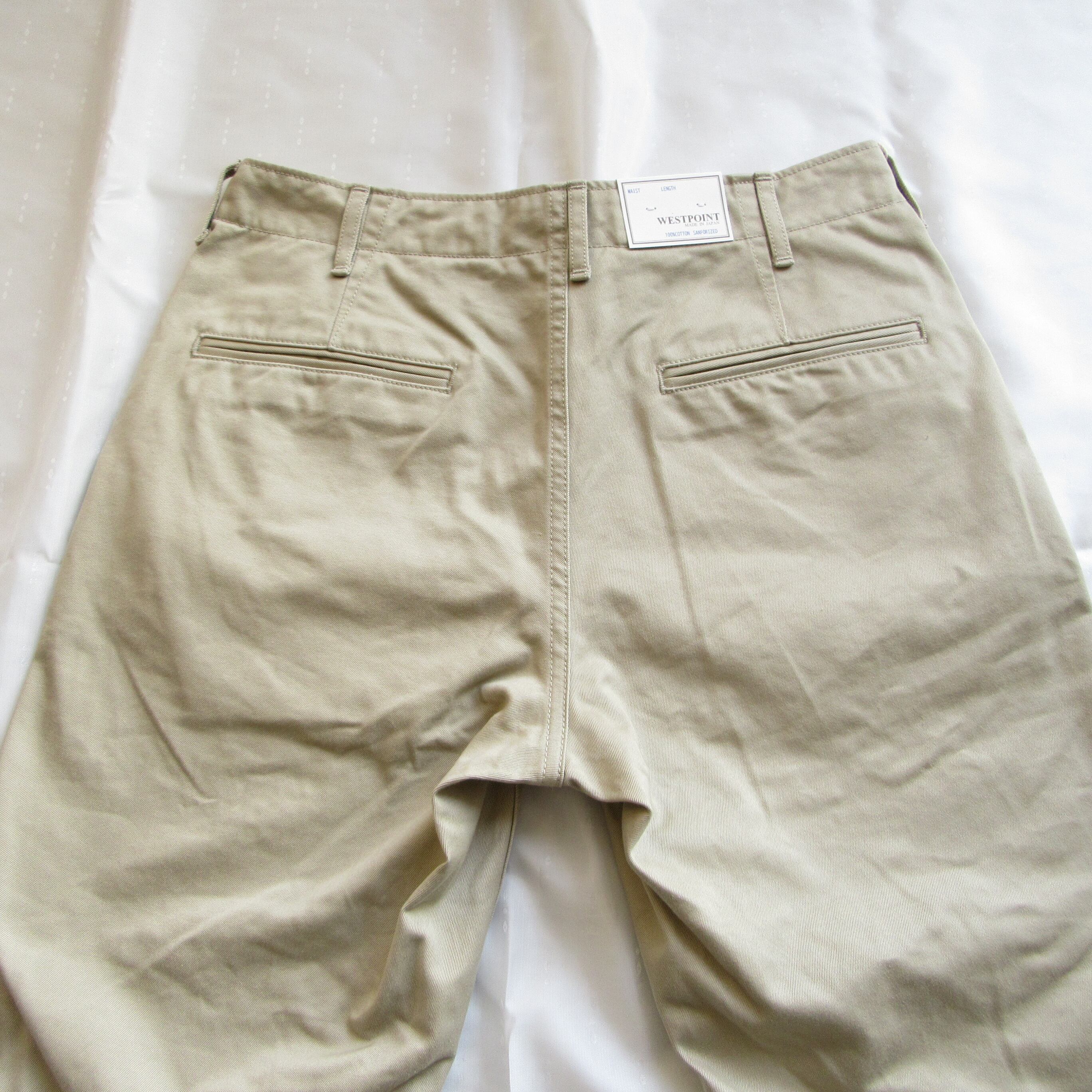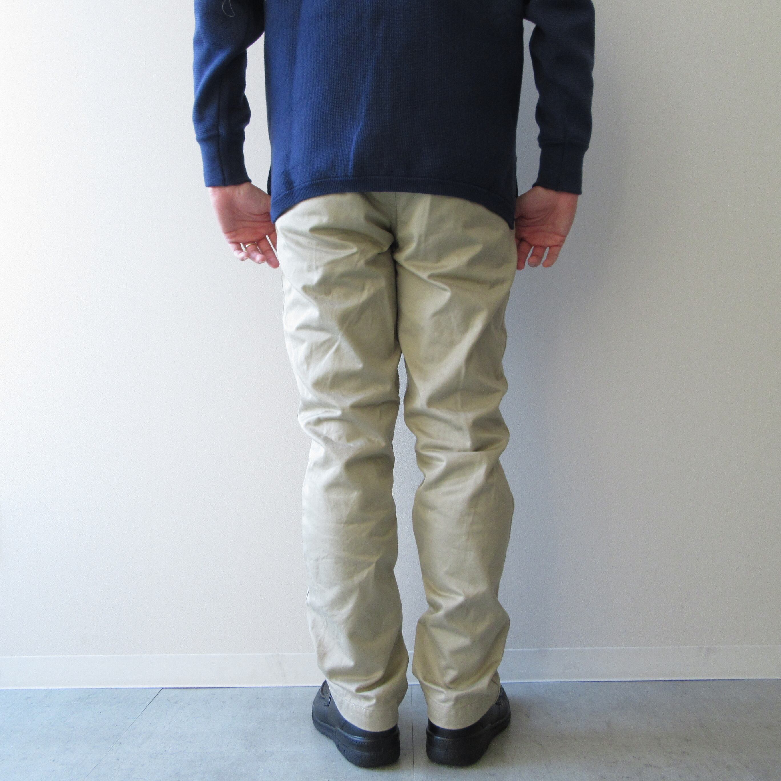 一般的なチノパンに使われるチノクロスよりも丈夫で高密度に織りあげたウエストポイントを使用したトラウザーズ。
