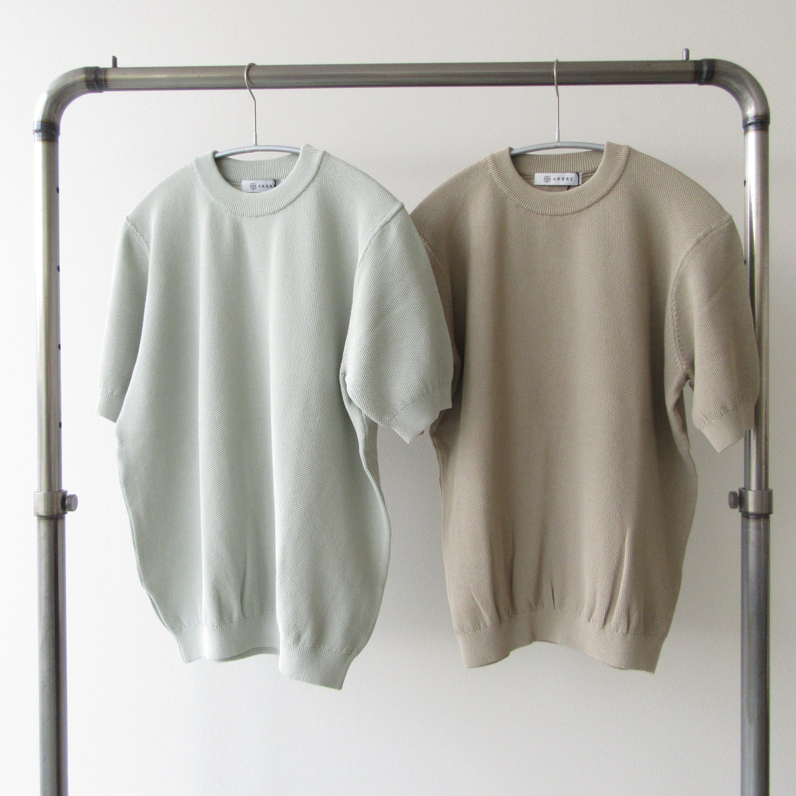 ARBRE ニットTシャツ ライムグリーン・グレージュ