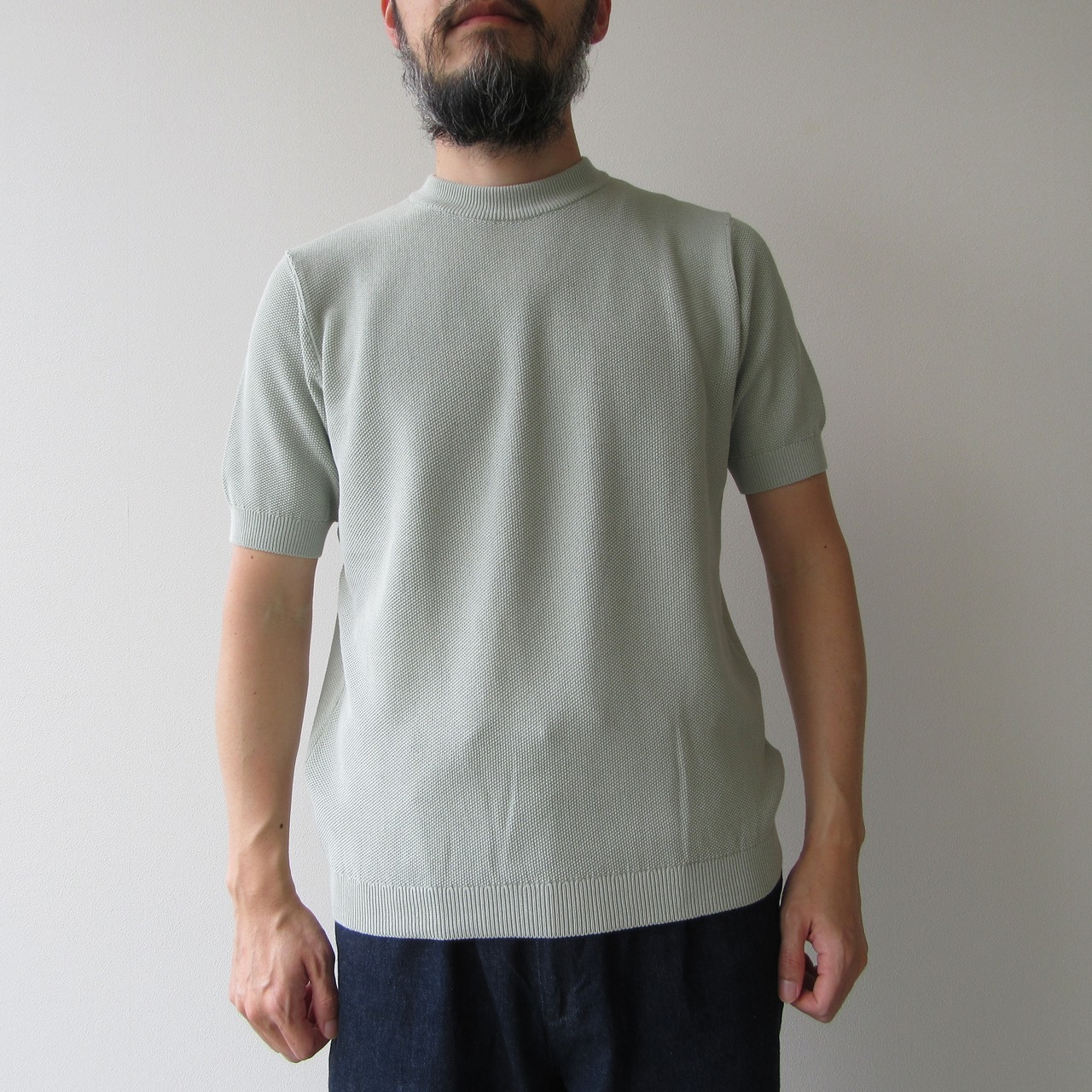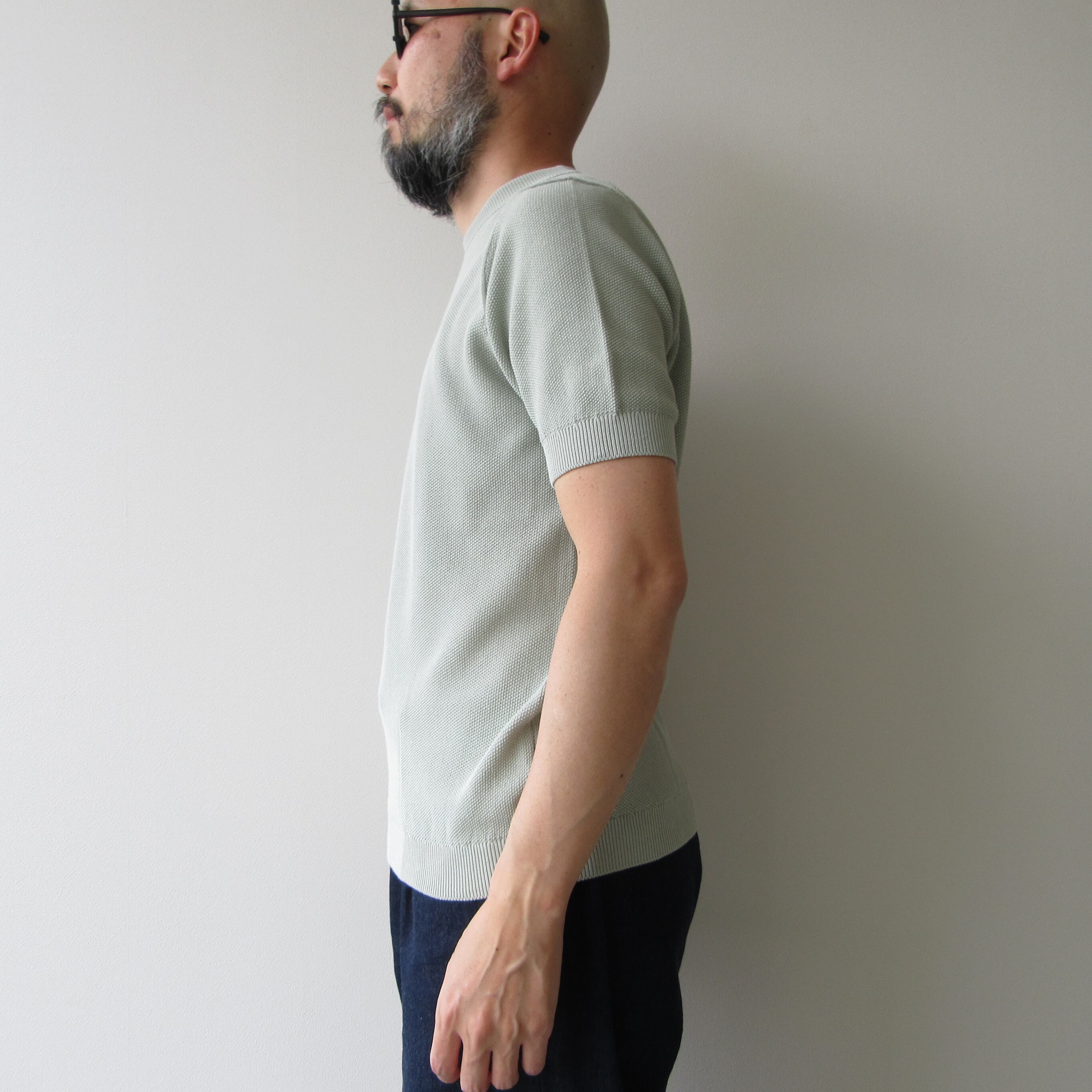 通気性や耐久性に優れておりニット生地なので伸縮性も持ち合わせています。シャリ感のある手触りで春夏シーズンにぴったりの涼しげな着心地となっています。