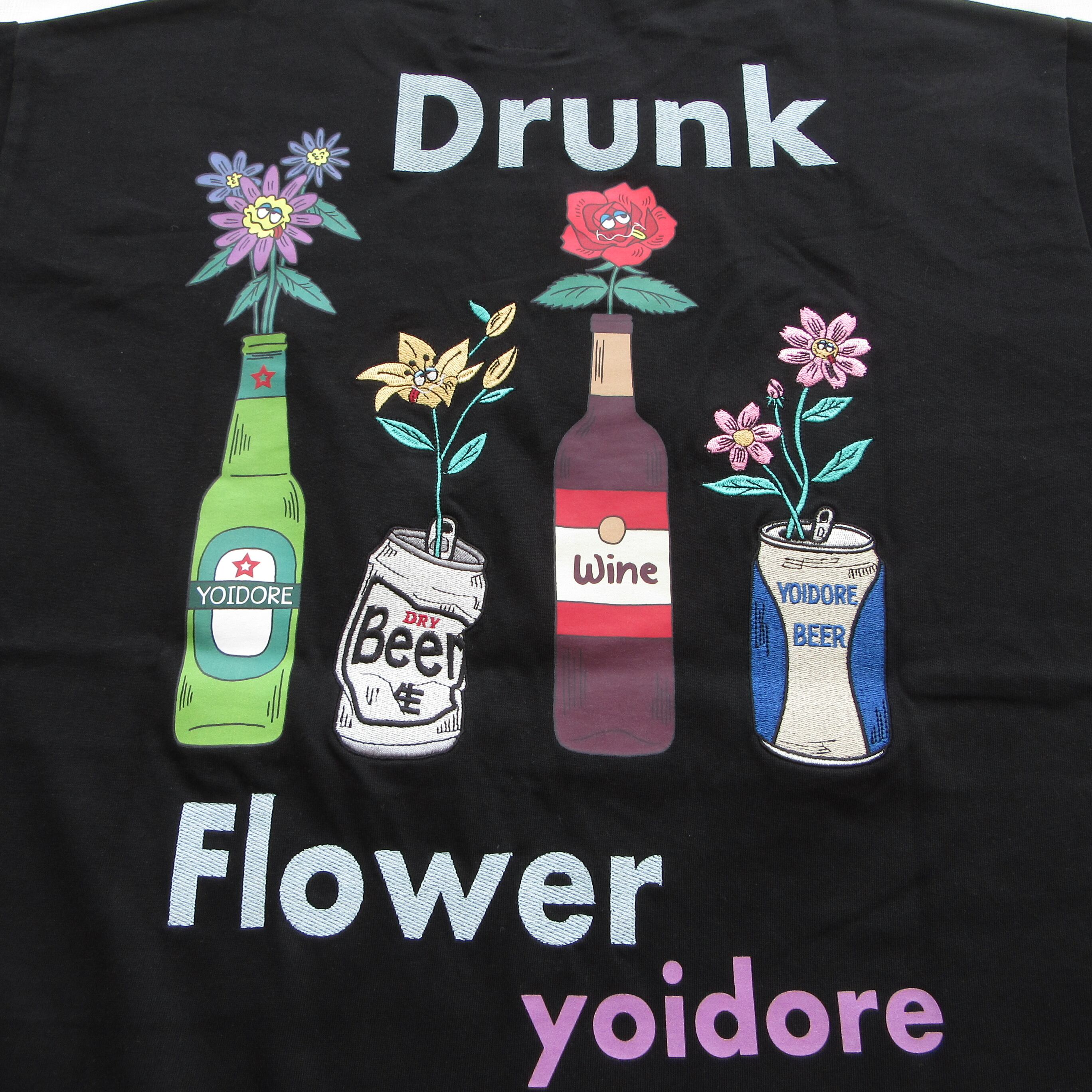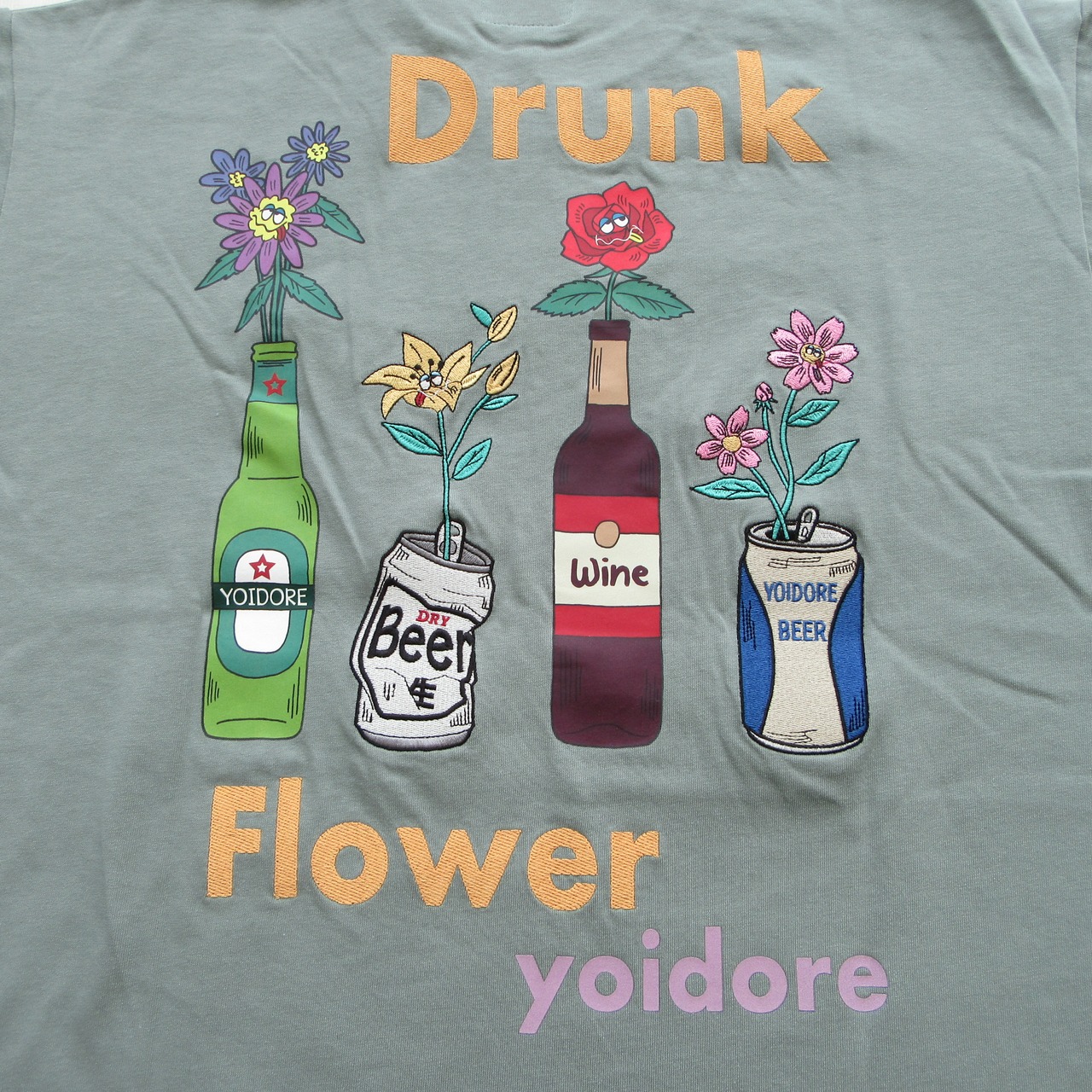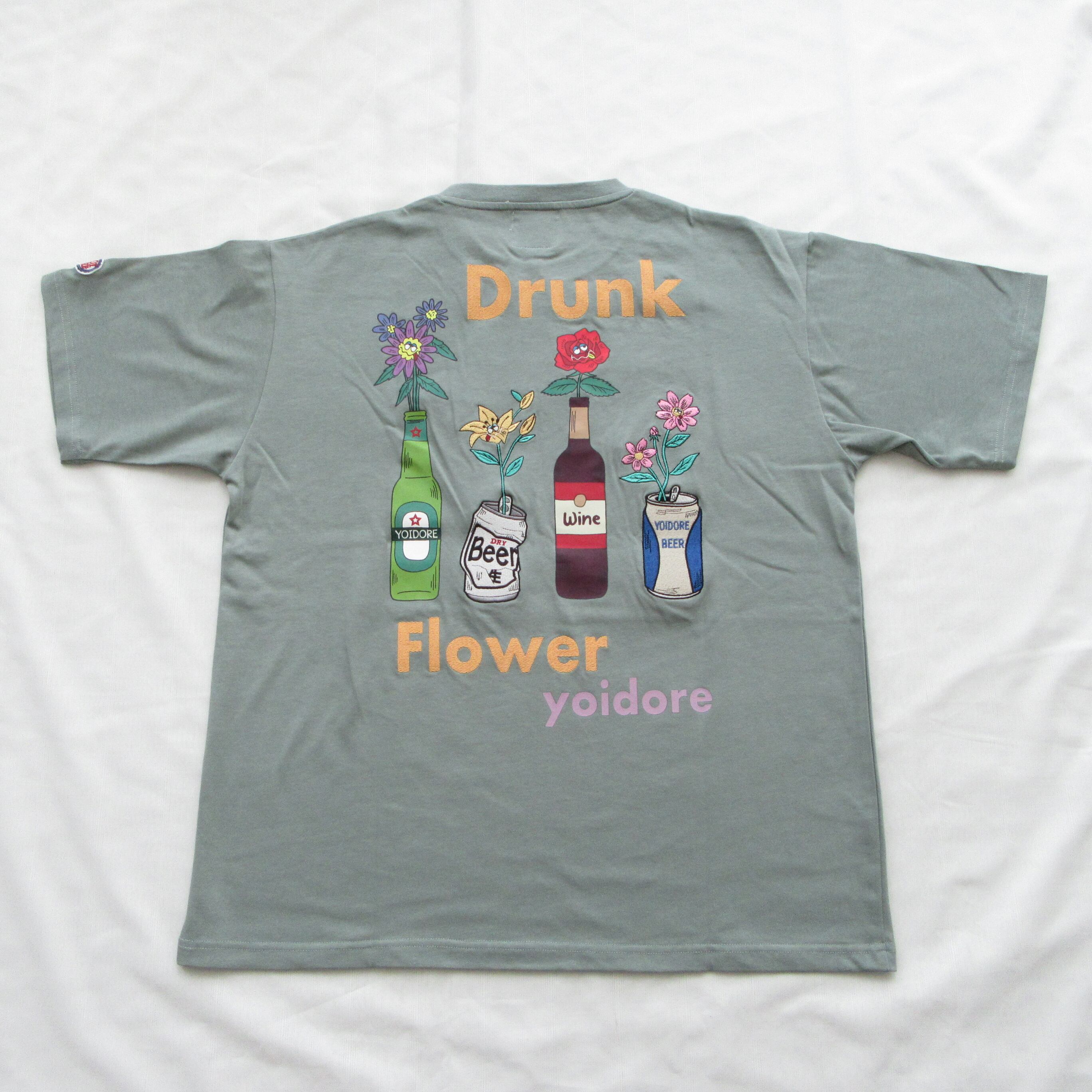 YOIDORE 酔っ払いフラワーTシャツ Lグリーン・ブラック
