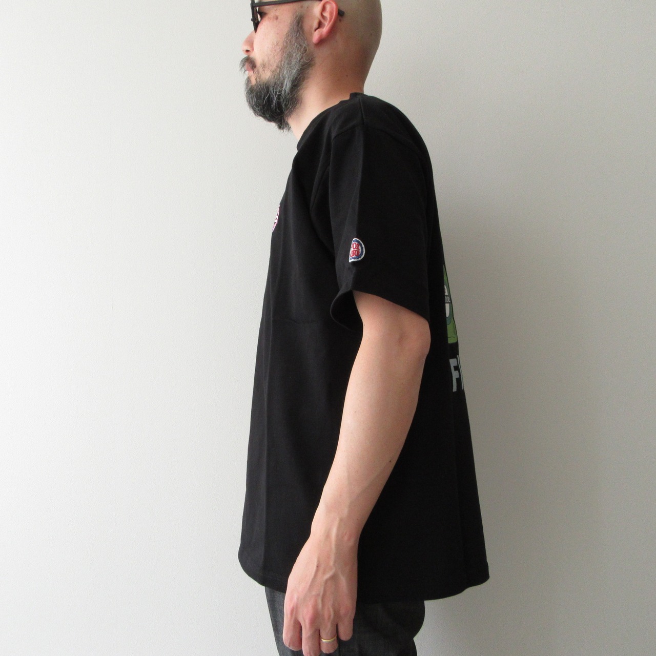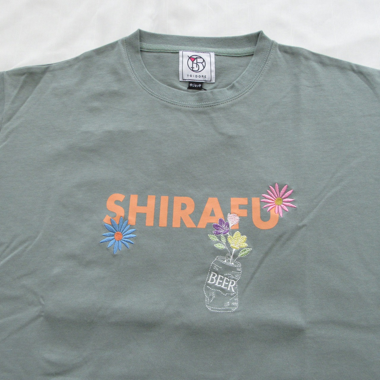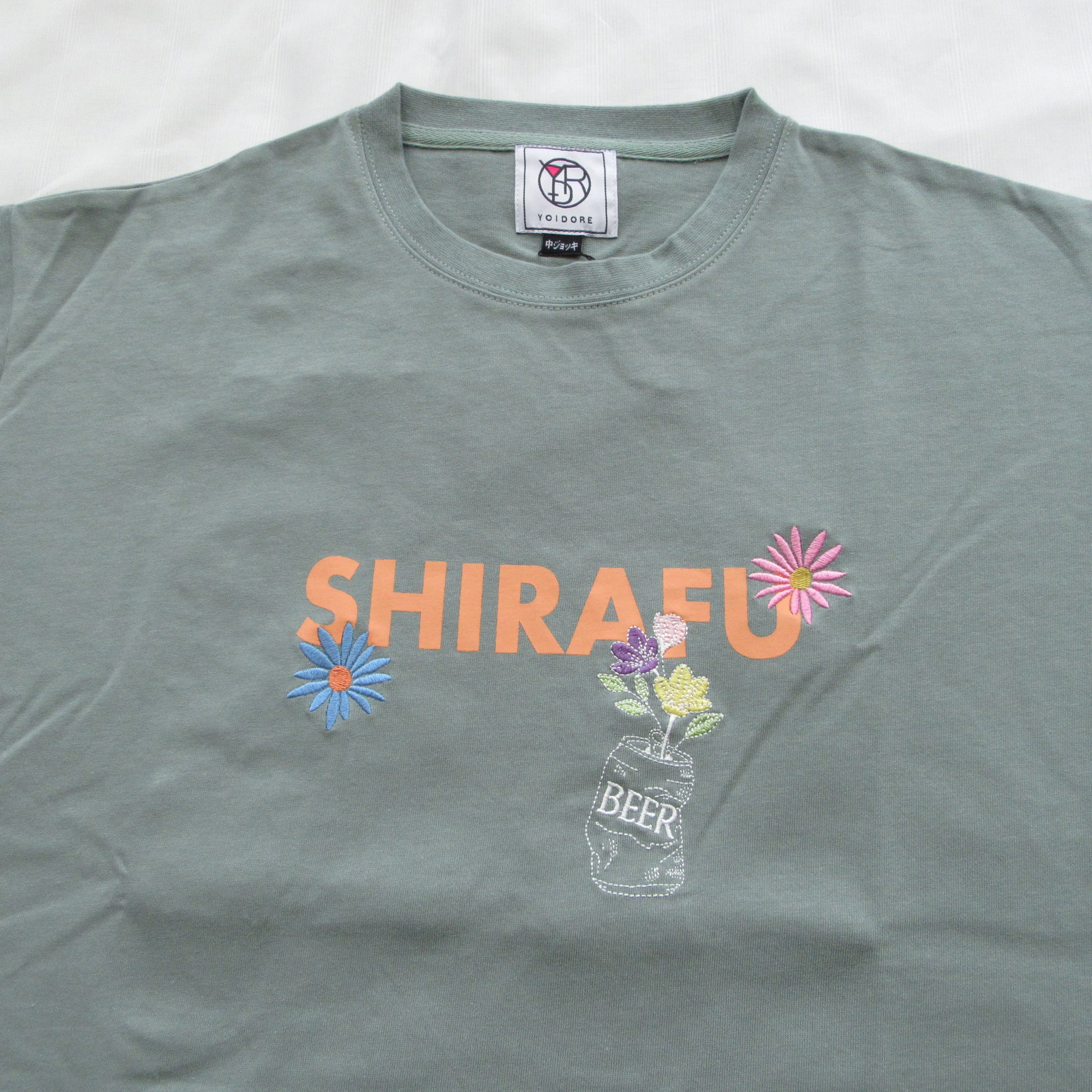 酔っ払いフラワーTシャツ Lグリーン・ブラック