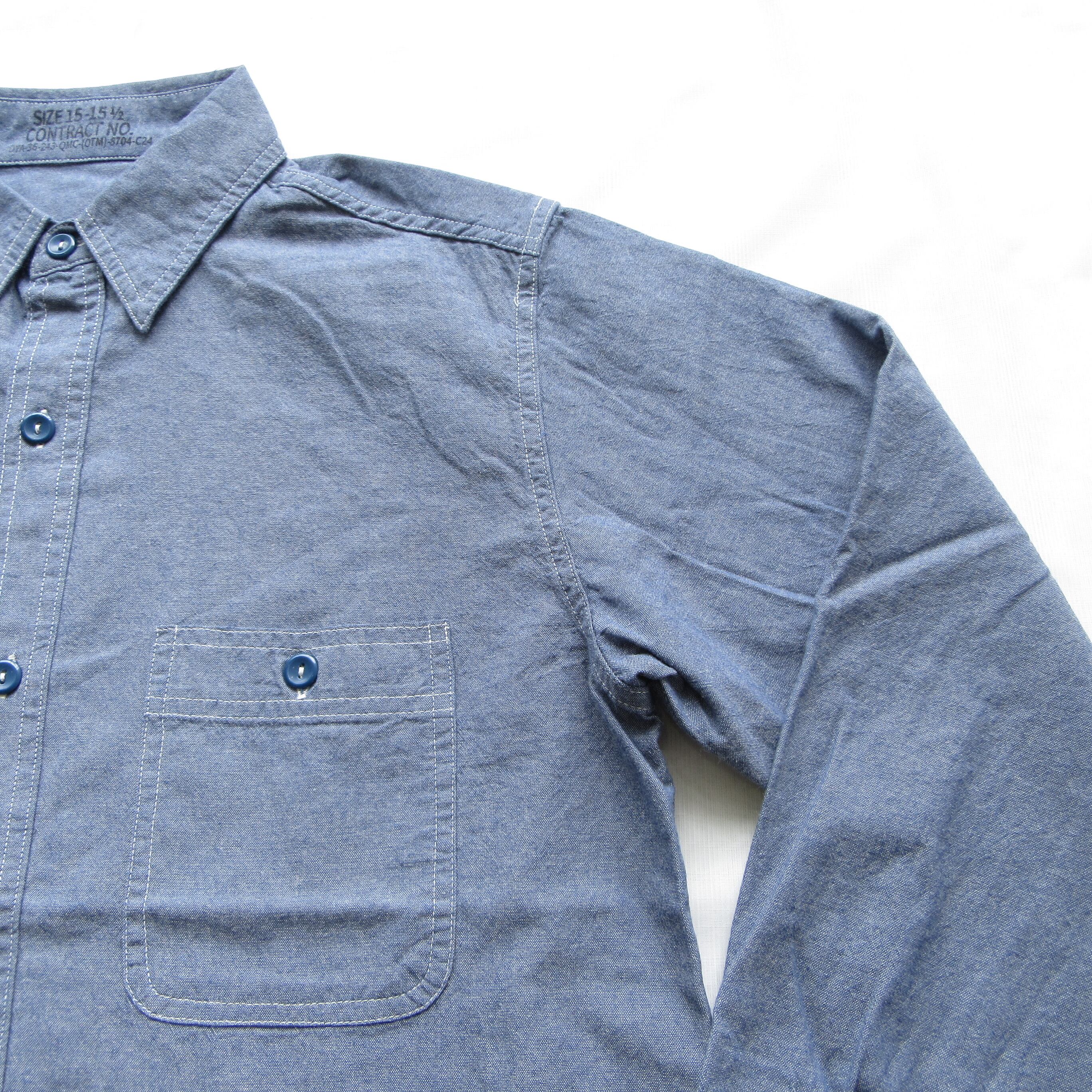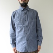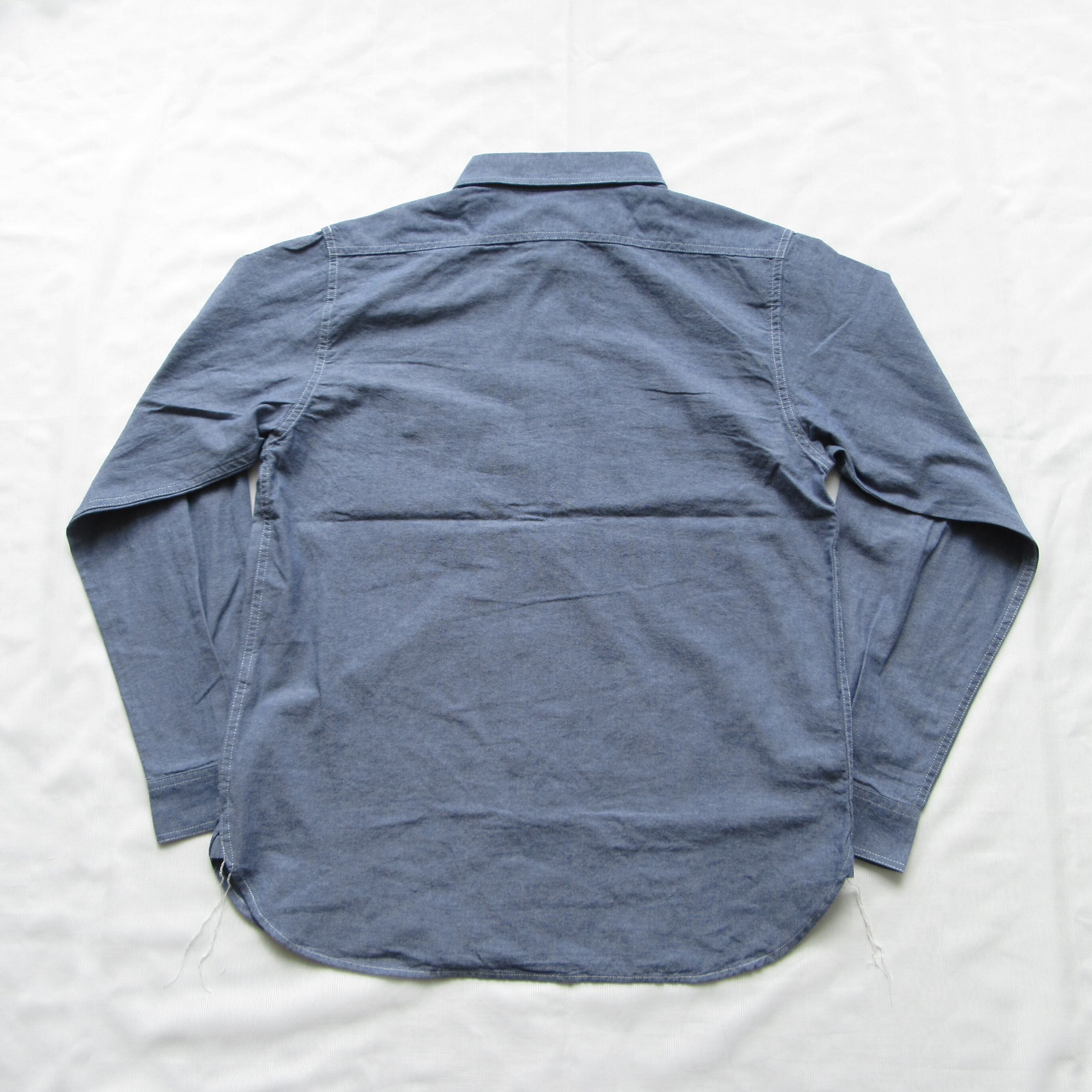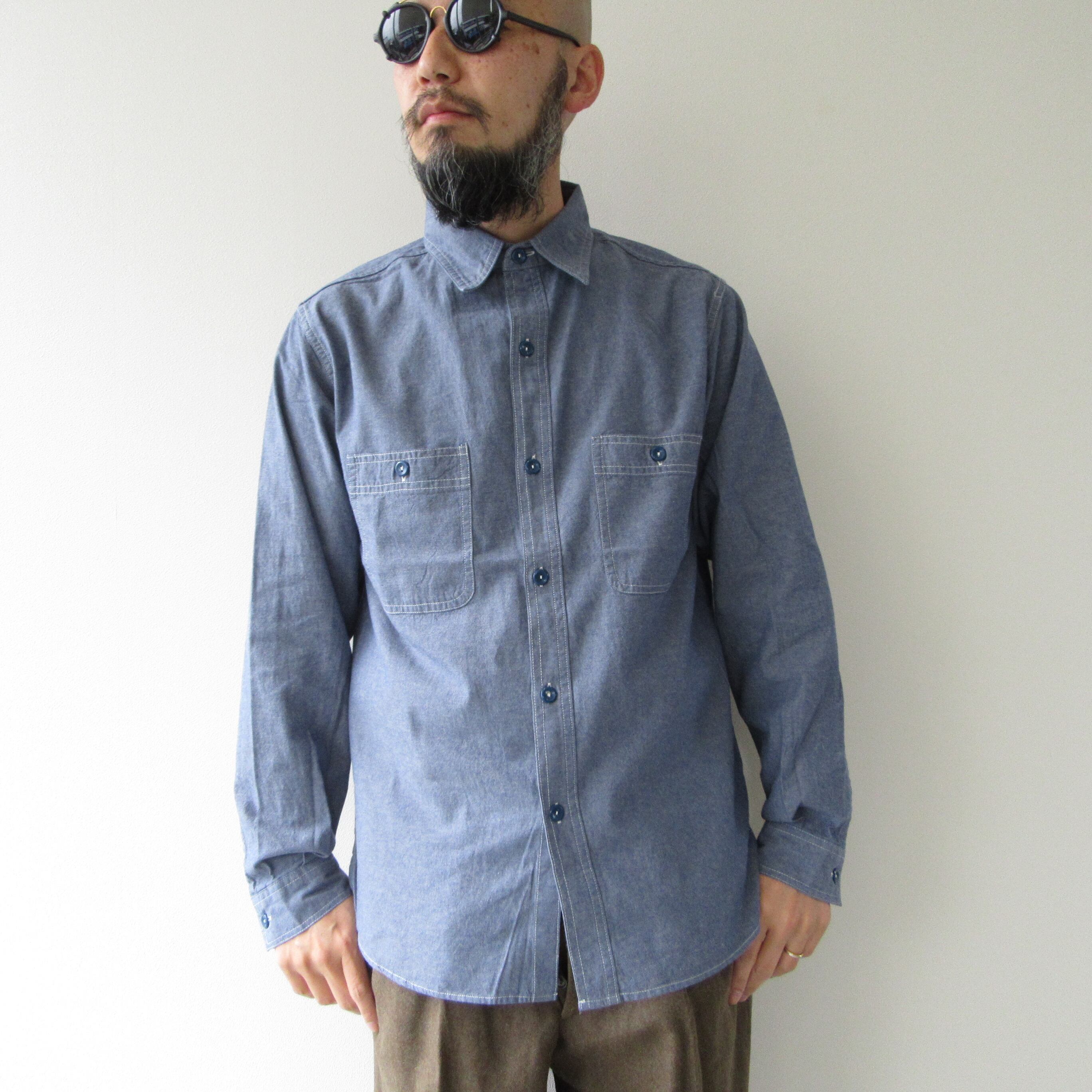 生地と同色のボタンを使った仕様や裾のマチや空環仕上げなどワークシャツらしいディティールに仕上げています。